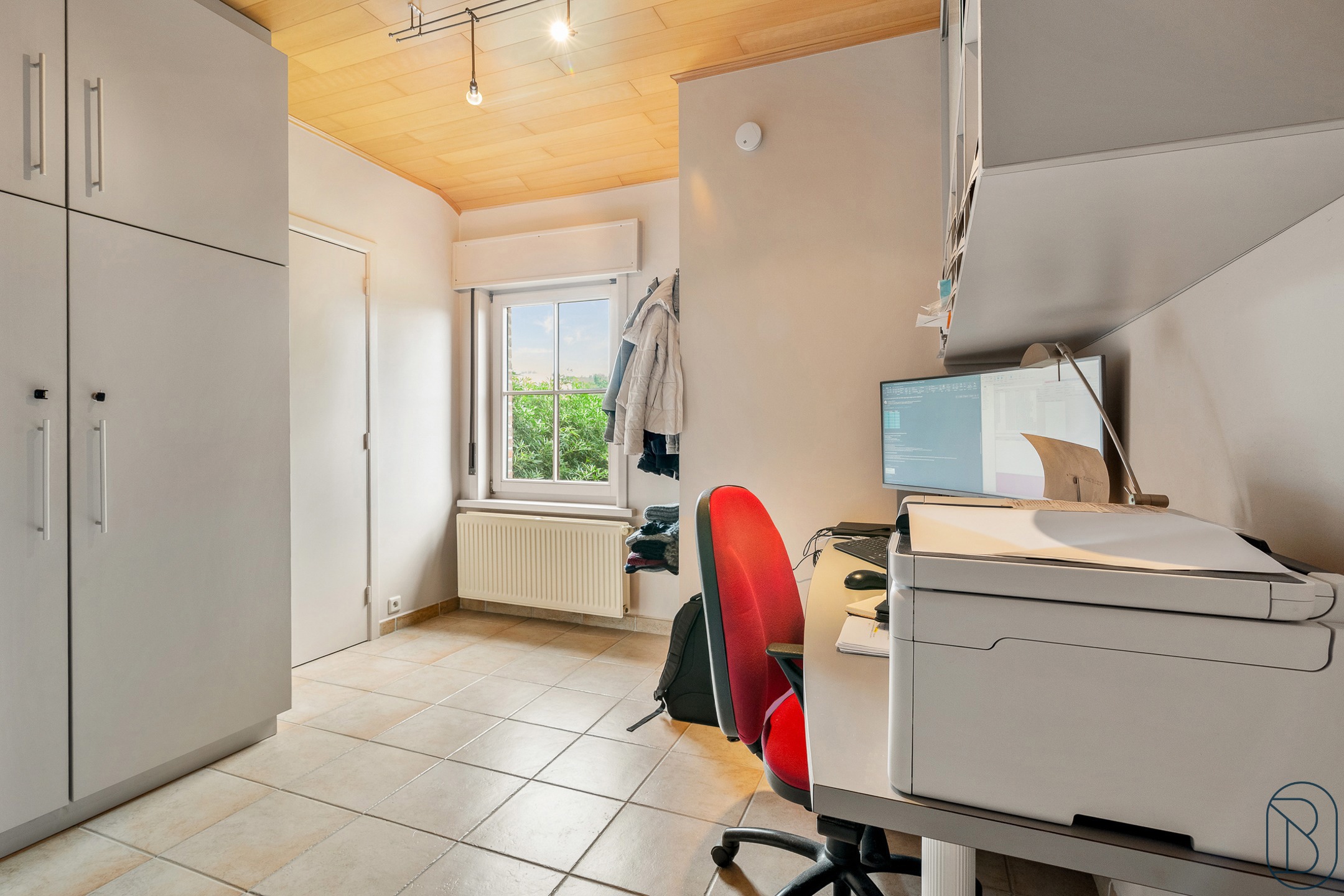 À l’étage : hall de nuit avec placards intégrés, 4 chambres et un espace de rangement.