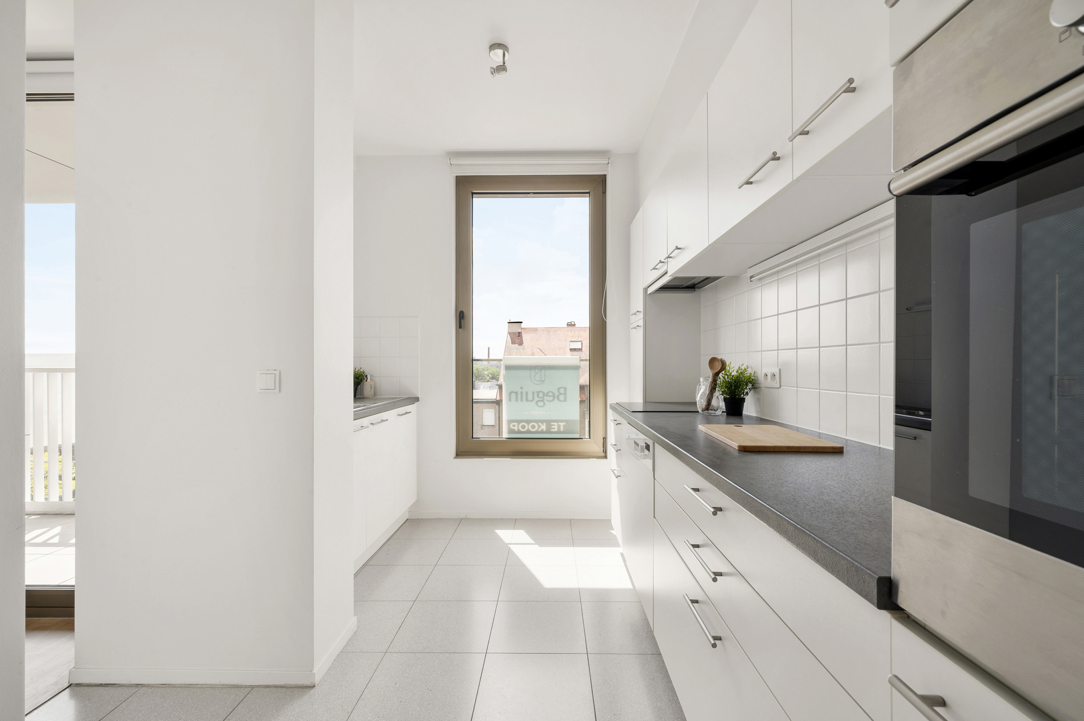 APPARTEMENT HAUT SITUE avec 2 chambres et une belle TERRASSE ENSOLEILLEE avec une belle VUE sur la verdure et le Veemarkt. Situé en plein centre de KORTRIJK dans une RESIDENCE recherchée ! DESCRIPTION : entrée avec toilettes séparées, grand séjour lumineux (beau parquet, hauts plafonds, grandes fenêtres), cuisine équipée avec débarras pratique adjacent, hall de nuit, grande salle de bain (double lavabo, baignoire et toilettes) et 2 chambres spacieuses. Il y a également une pièce de rangement pratique au sous-sol. APPARTEMENT QUALITATIF et lumineux ! TROEVEN : double vitrage alu, chauffage au gaz par le sol, étage élevé, DOMOTICA, SITUATION CENTRALE. Visite sur rendez-vous avec IMMO BEGUIN : 0486/606.600