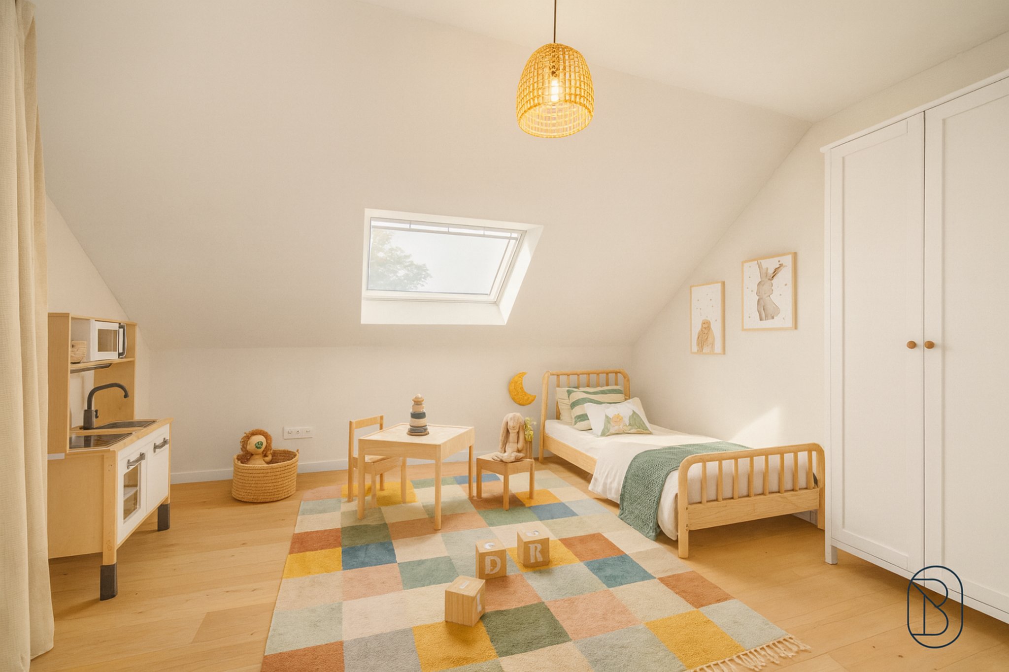 Au deuxième étage, il y a à nouveau 2 chambres et une salle de douche.