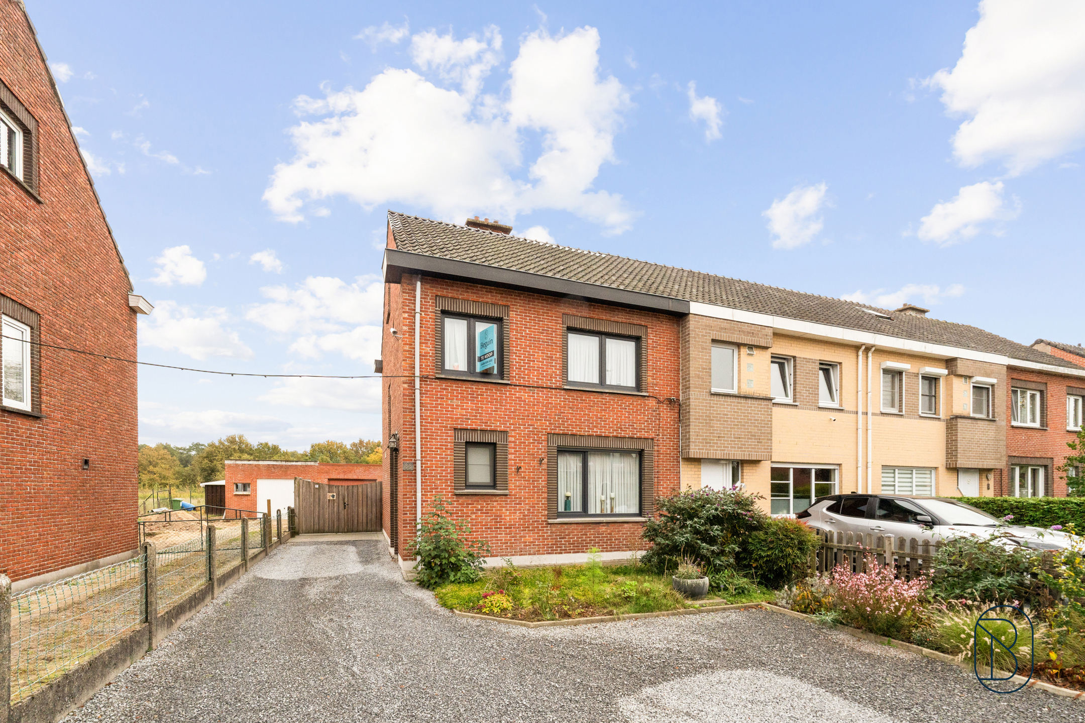 Charmante maison idéalement située, avec large allée et garage, agréable séjour, cuisine ouverte et véranda lumineuse.