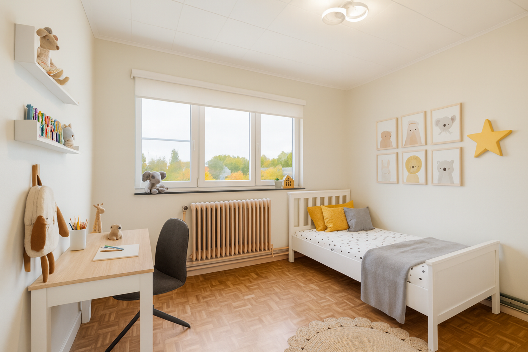 La situation est un véritable atout : un quartier résidentiel calme avec toutes les commodités accessibles à pied. Écoles, commerces, arrêts de bus et la gare de De Pinte sont facilement accessibles. En voiture, vous êtes à quelques minutes de l’E17, offrant une excellente connexion vers Gand et Courtrai.