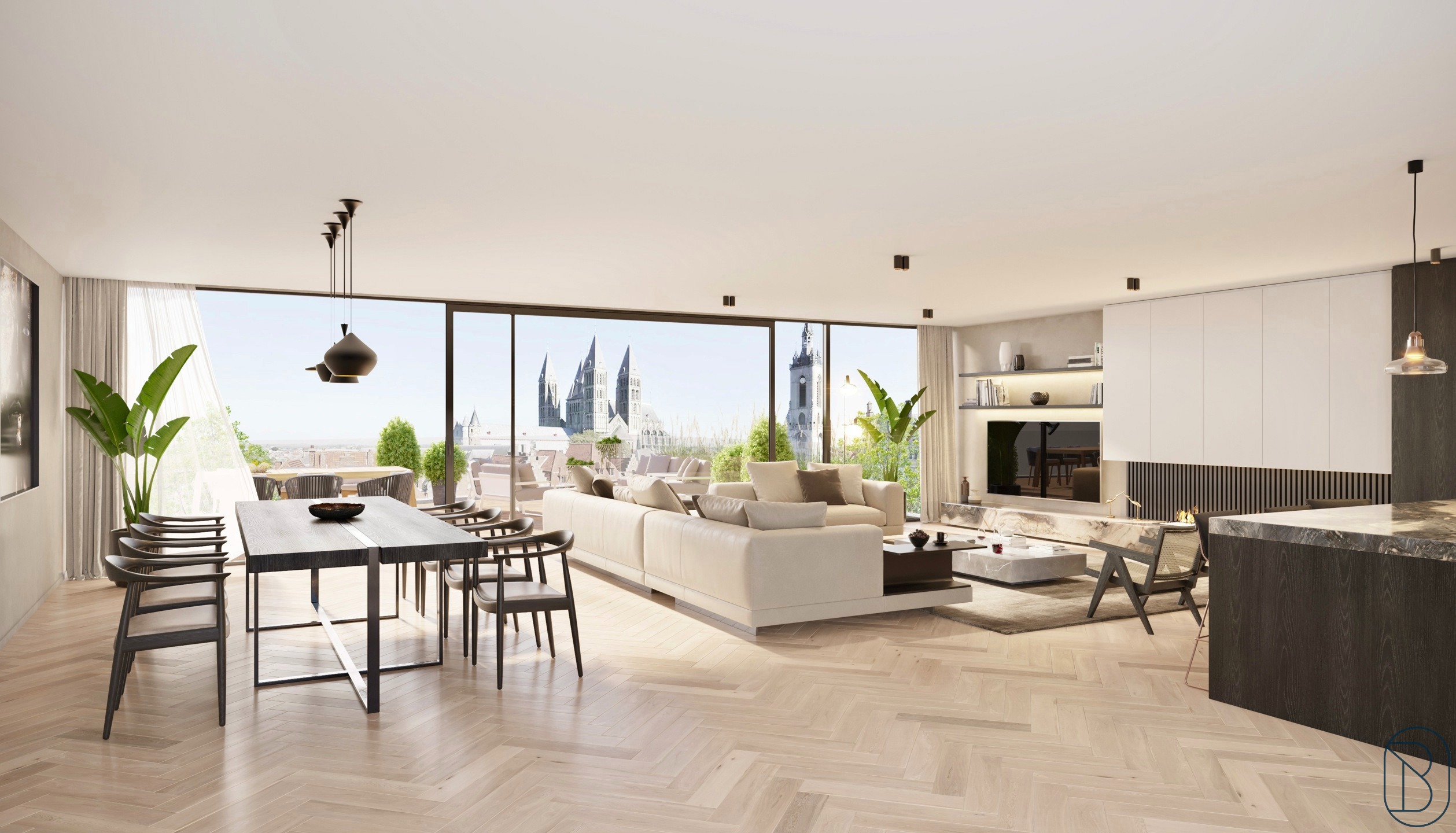 Ruim, licht en afgewerkt met duurzame kwaliteitsmaterialen, zuidgerichte terrassen met zicht op de kathedraal.