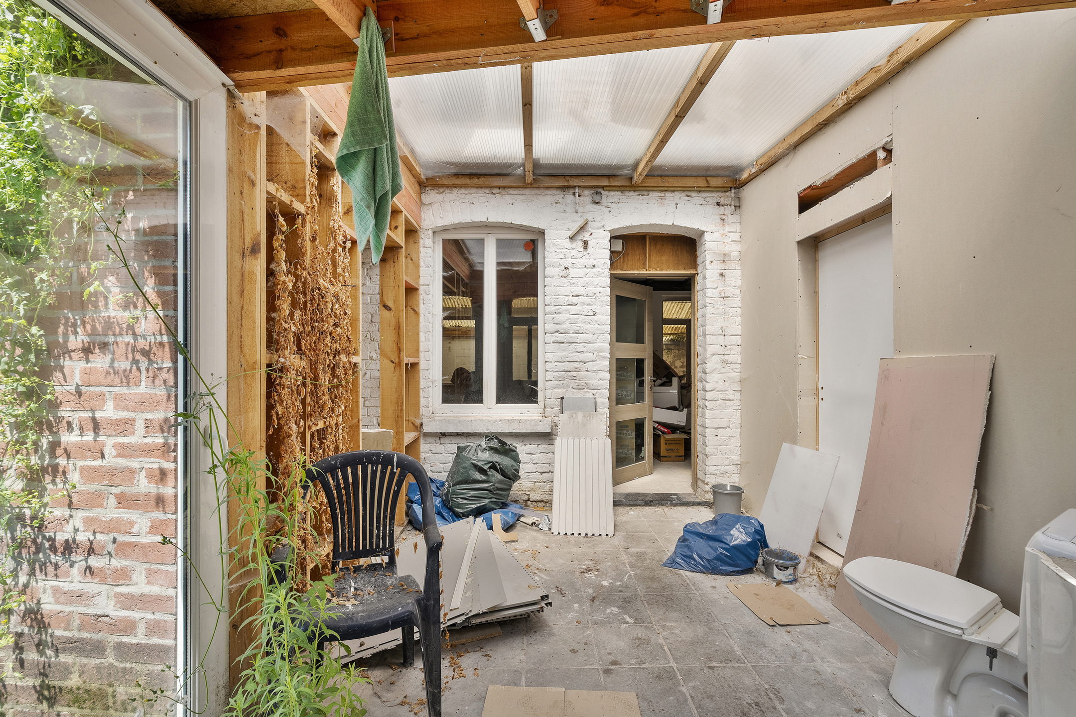 Op het gelijkvloers vindt u de winkelruimte van meer dan 40m2 (momenteel verhuurd voor €700/maand), te renoveren bijgebouwen, 2 grote garages. Op het 1ste verdiep is er een casco-appartement van bijna 100m2. Bouwvergunning aangevraagd.