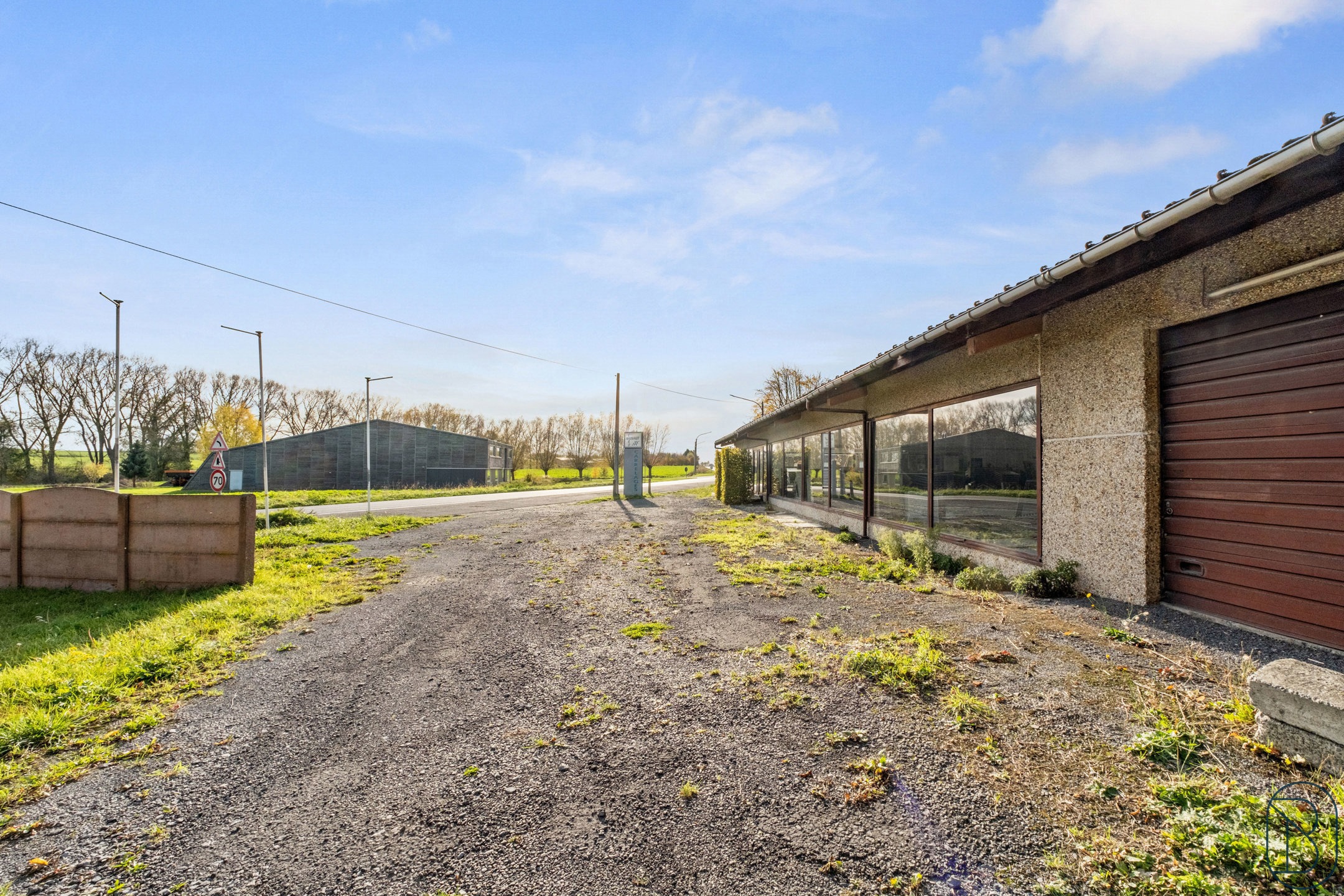 Commercieel gebouw (showroom), te renoveren woning, en grote parking, en dit op een commerciële locatie.