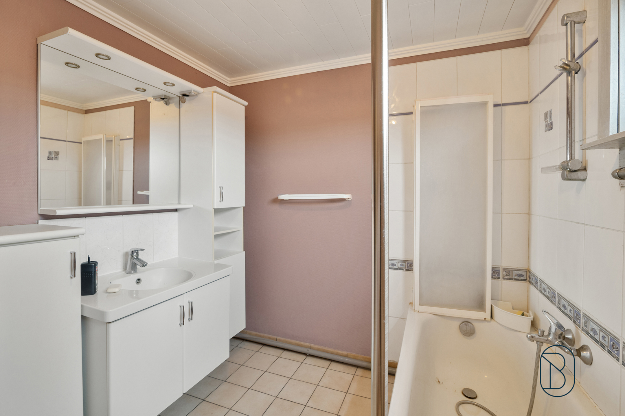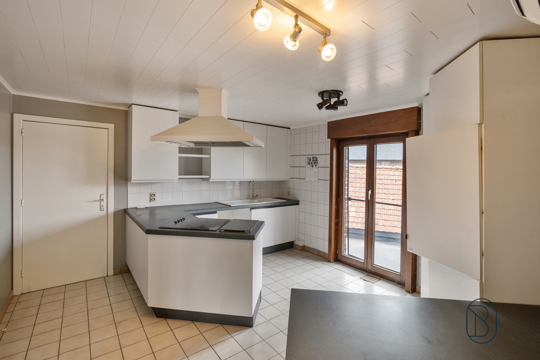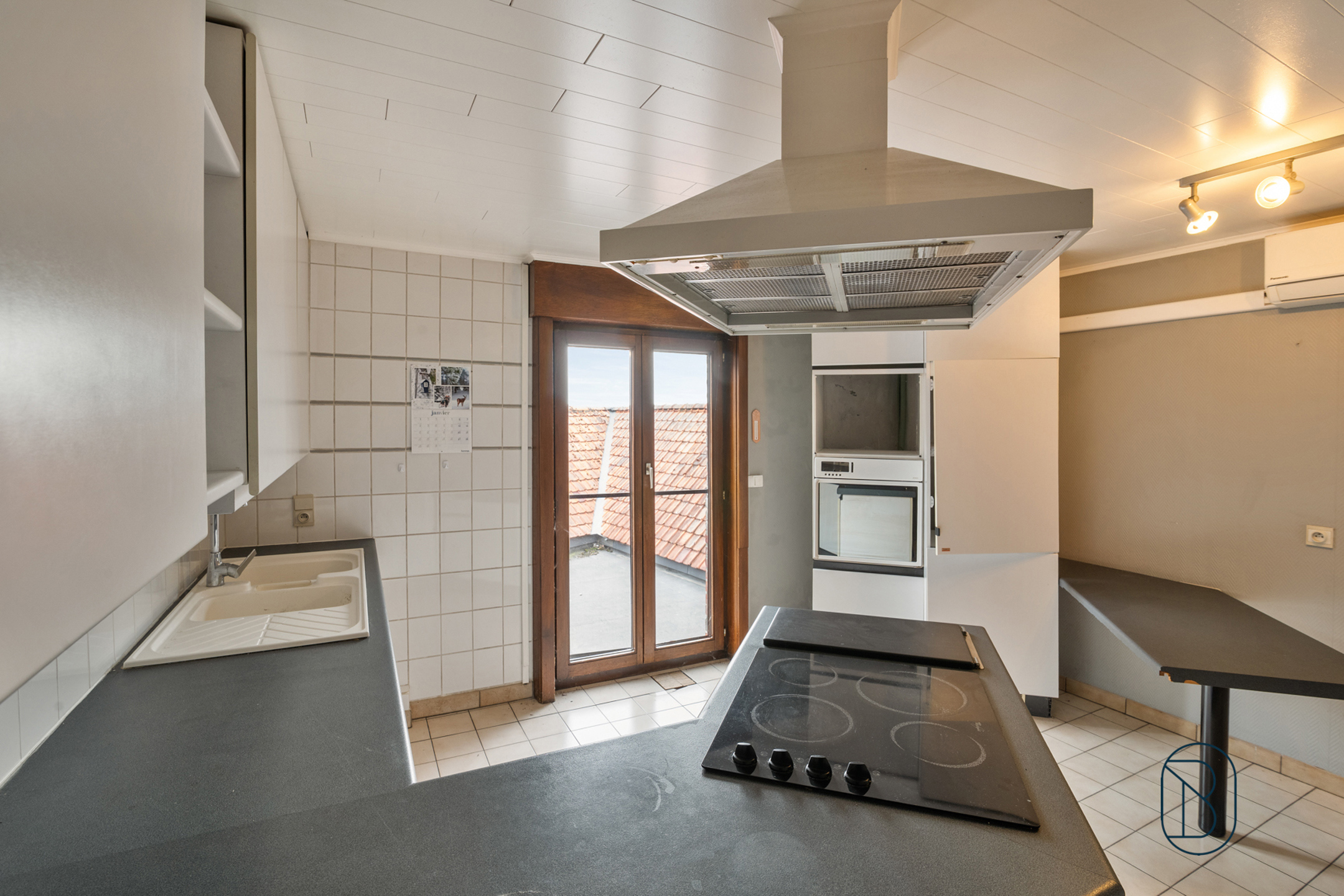 Appartement 1 beschikt over een inkomhal, leefruimte met eetplaats, volledig uitgeruste keuken, berging/wasplaats, twee slaapkamers, badkamer, zonnig dakterras en ruime zolder.
