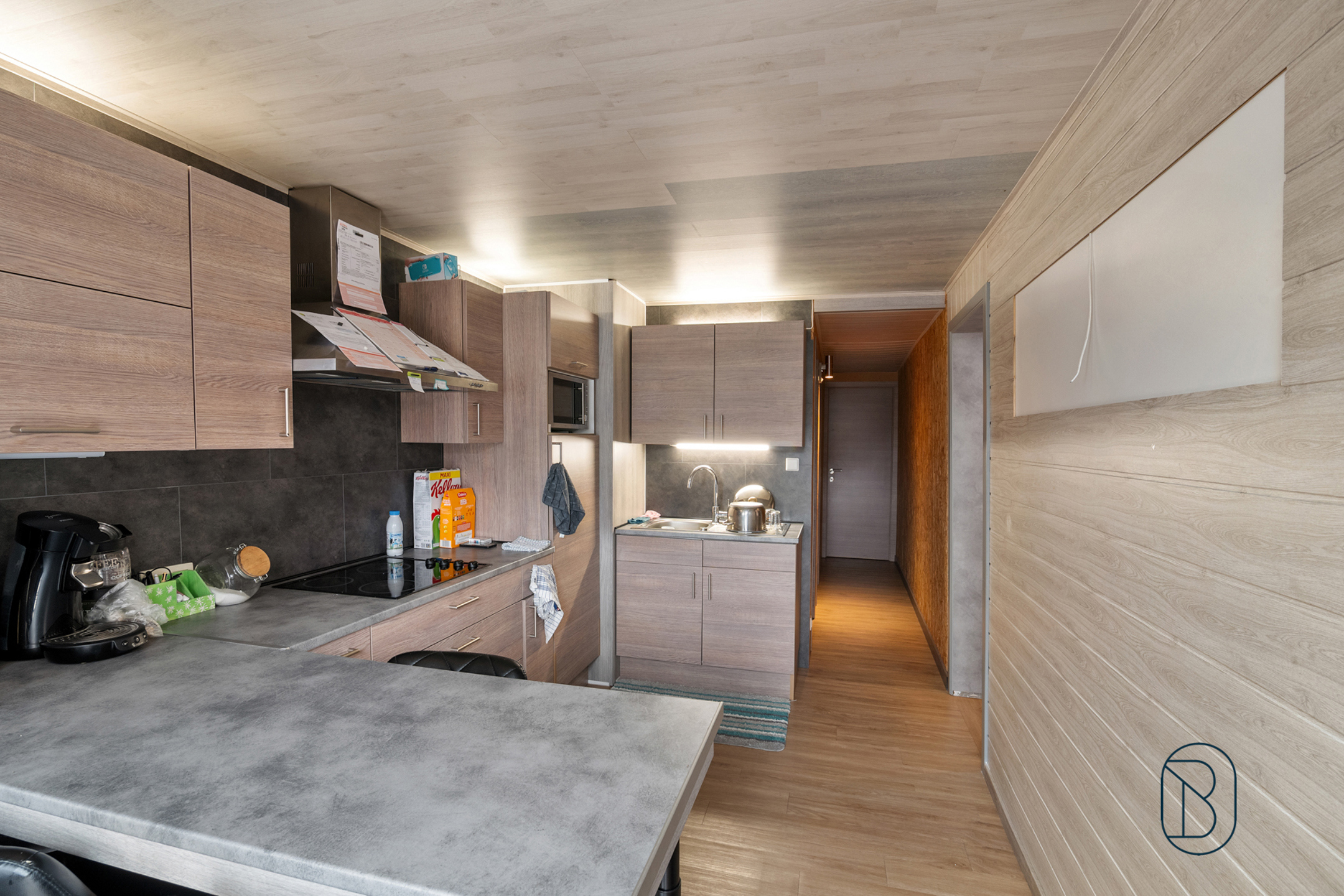 Appartement 2 biedt een open leefruimte met ingerichte keuken, twee slaapkamers, moderne douchekamer en pelletverwarming. TROEVEN: individuele tellers, omkeerbare airco/verwarming, groot parkeerterrein en sterke verhuurmogelijkheden.