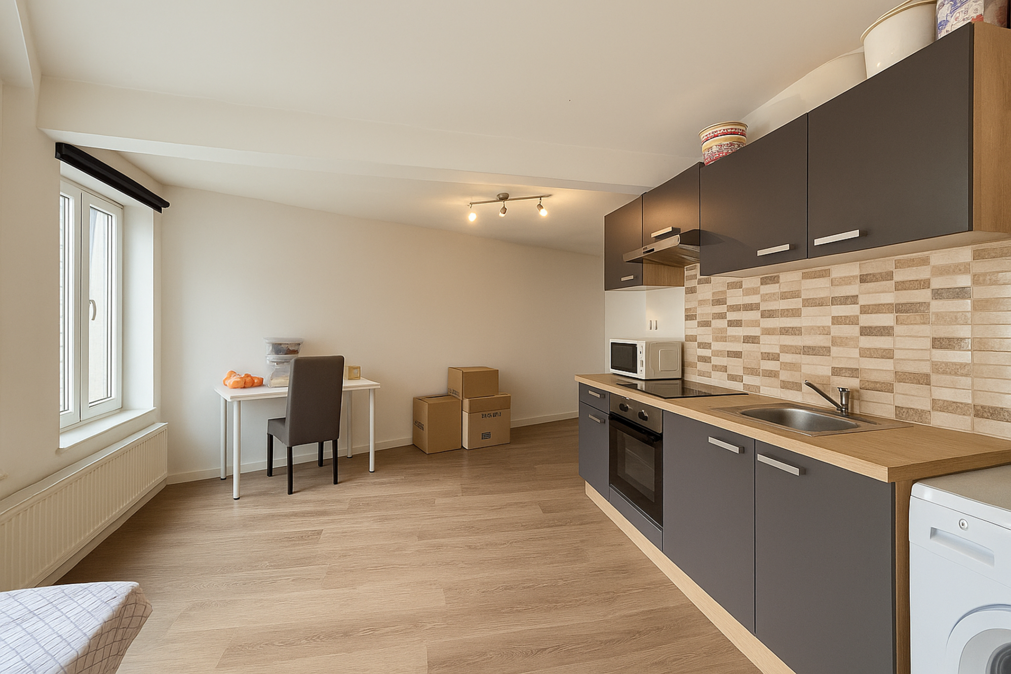 Ruim één-slaapkamerappartement in een charmant gebouw, gelegen in het centrum van Aat.