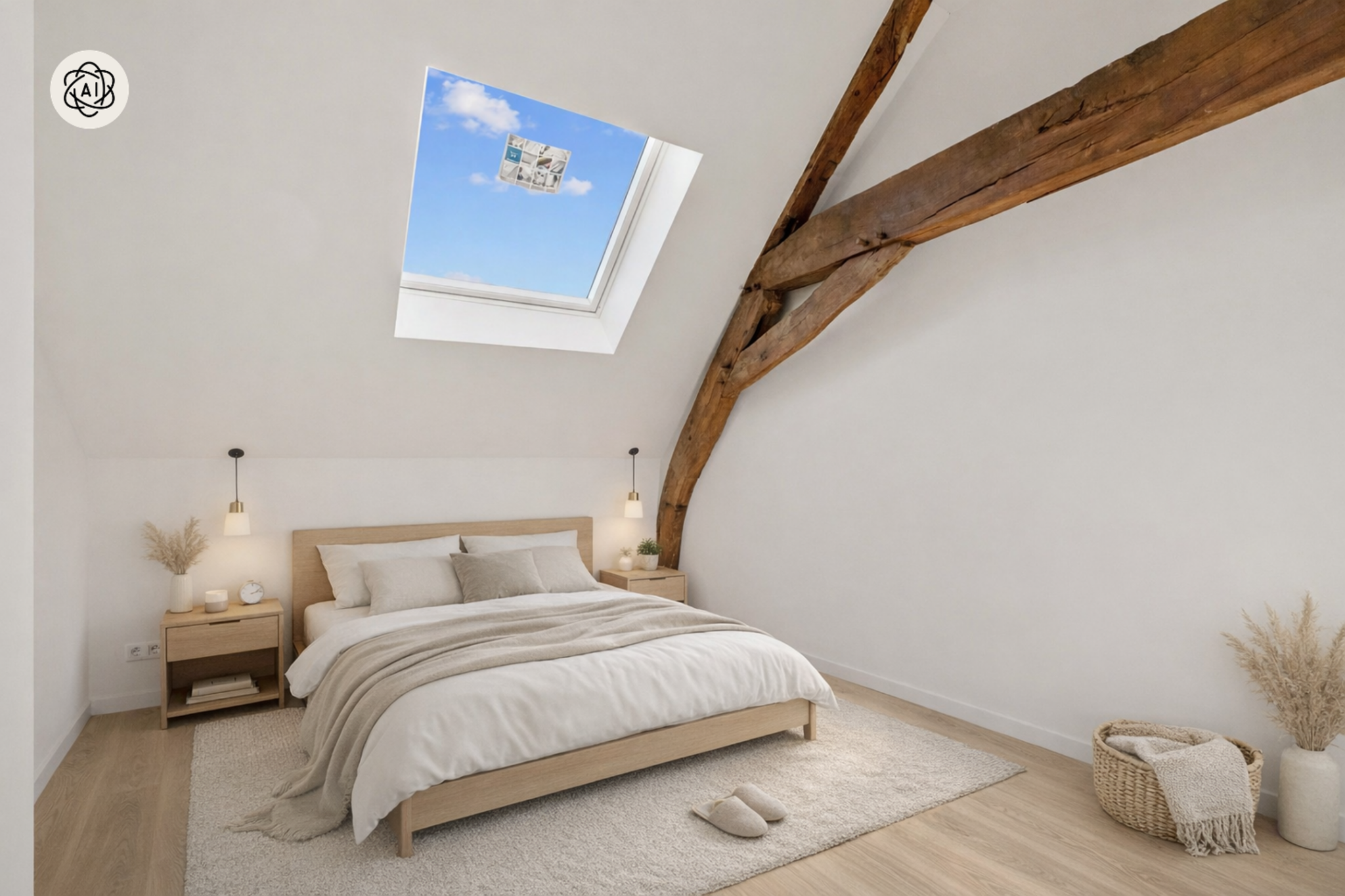 Op de eerste verdieping bevinden zich een grote badkamer met alle comfort en een ruime slaapkamer.