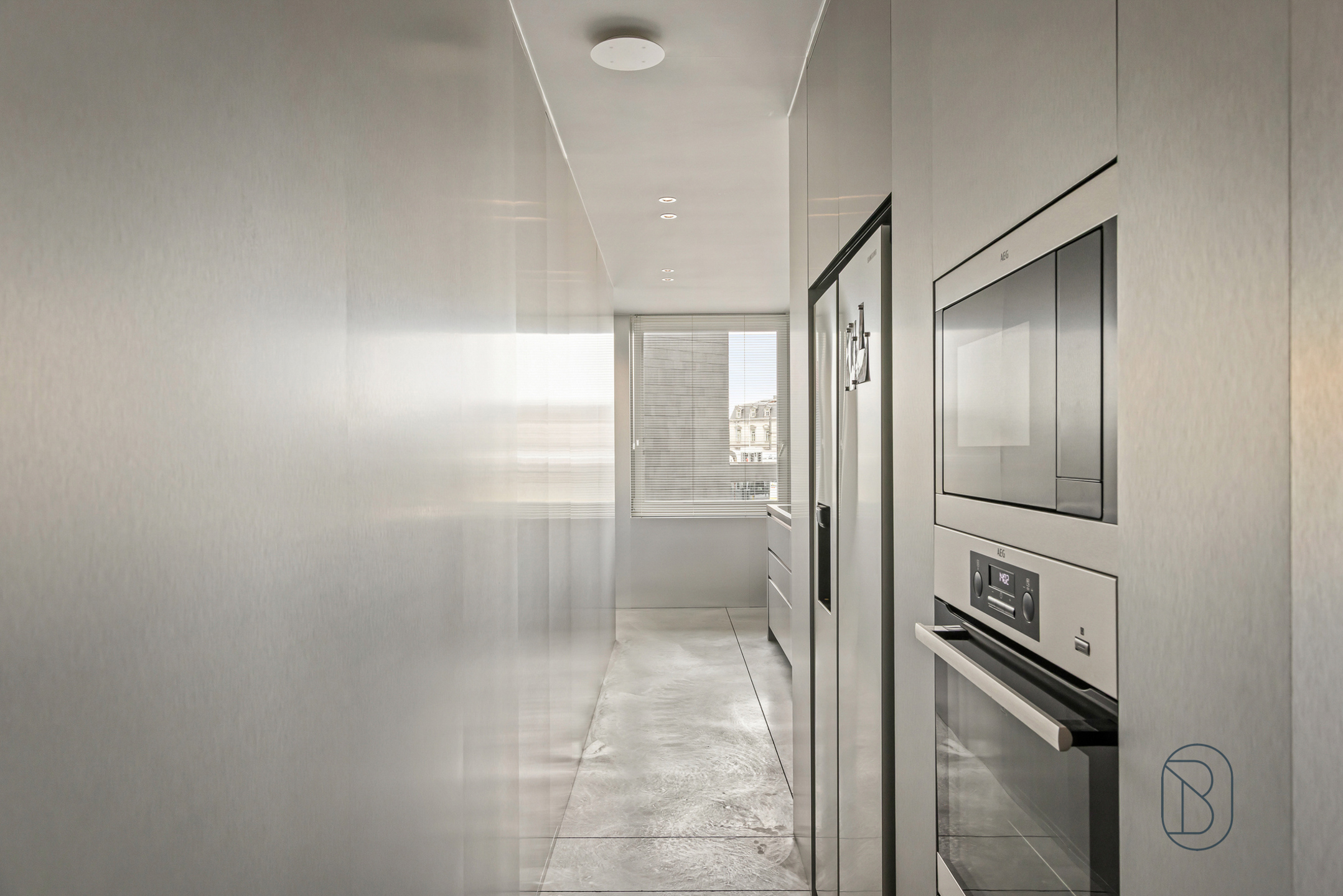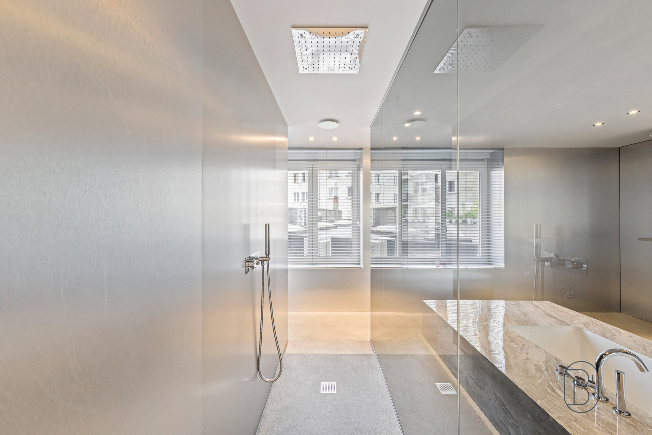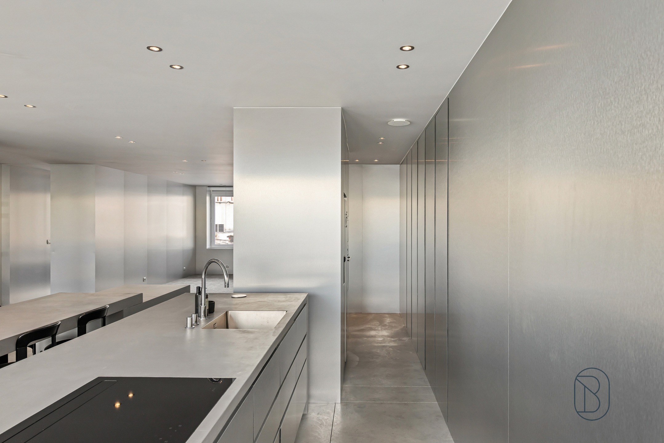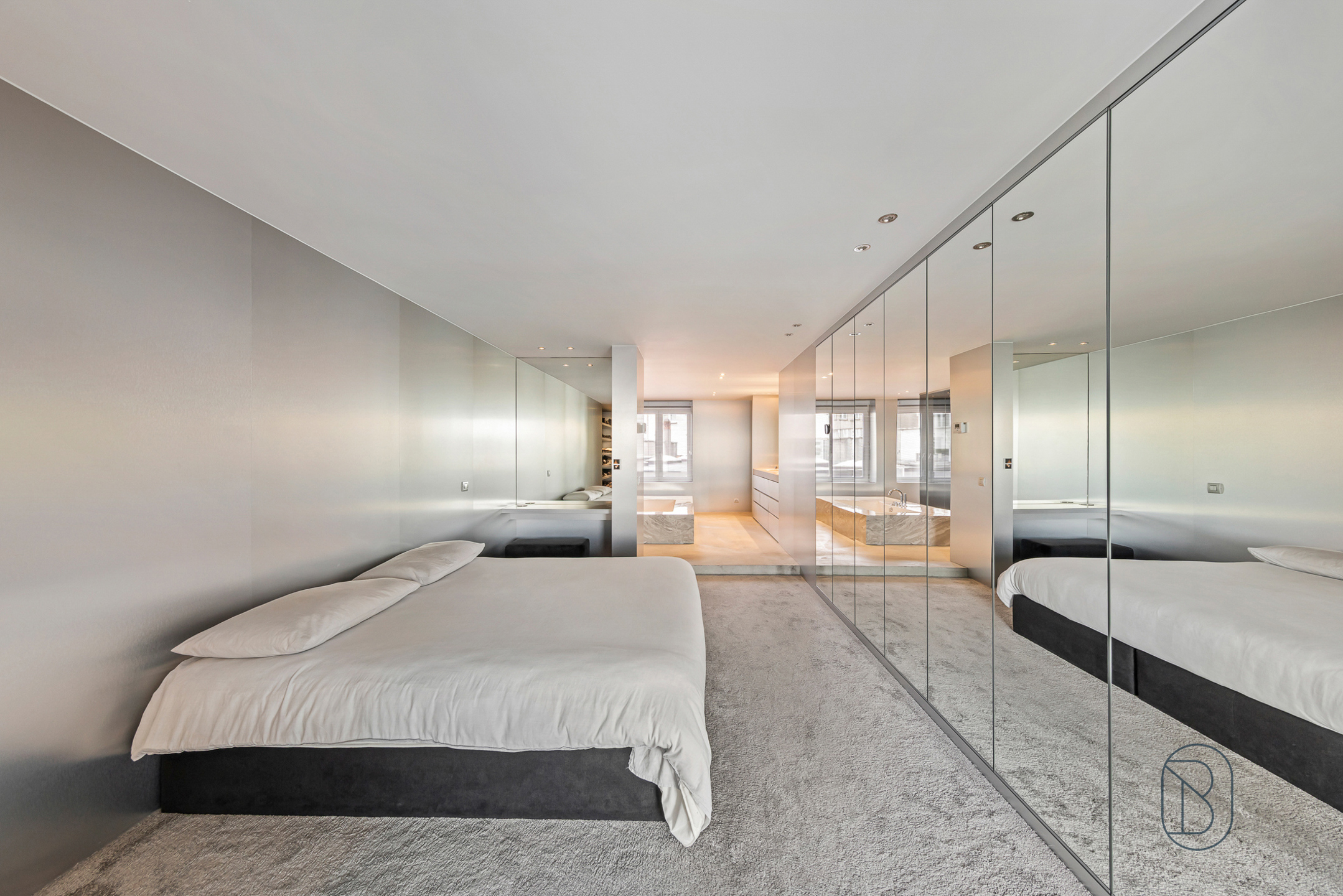 PRACHTIG GERENOVEERDE RUIME LOFT (192m²) met veel lichtinval pal in het centrum van Kortrijk. indeling: private inkomhal, lichtrijke grote leefruimte met open keuken, master bedroom met dressing. Volledig uitgeruste badkamer met dubbele lavabo, groot ligbad, inloopdouche en dressing. 2de slaapkamer met ingebouwde dressingkasten en wasplaats en een grote polyvalente ruimte voor een bureau of extra slaapkamer. Op het 5de verdiep vinden we een groot dakterras met panoramisch zicht.
