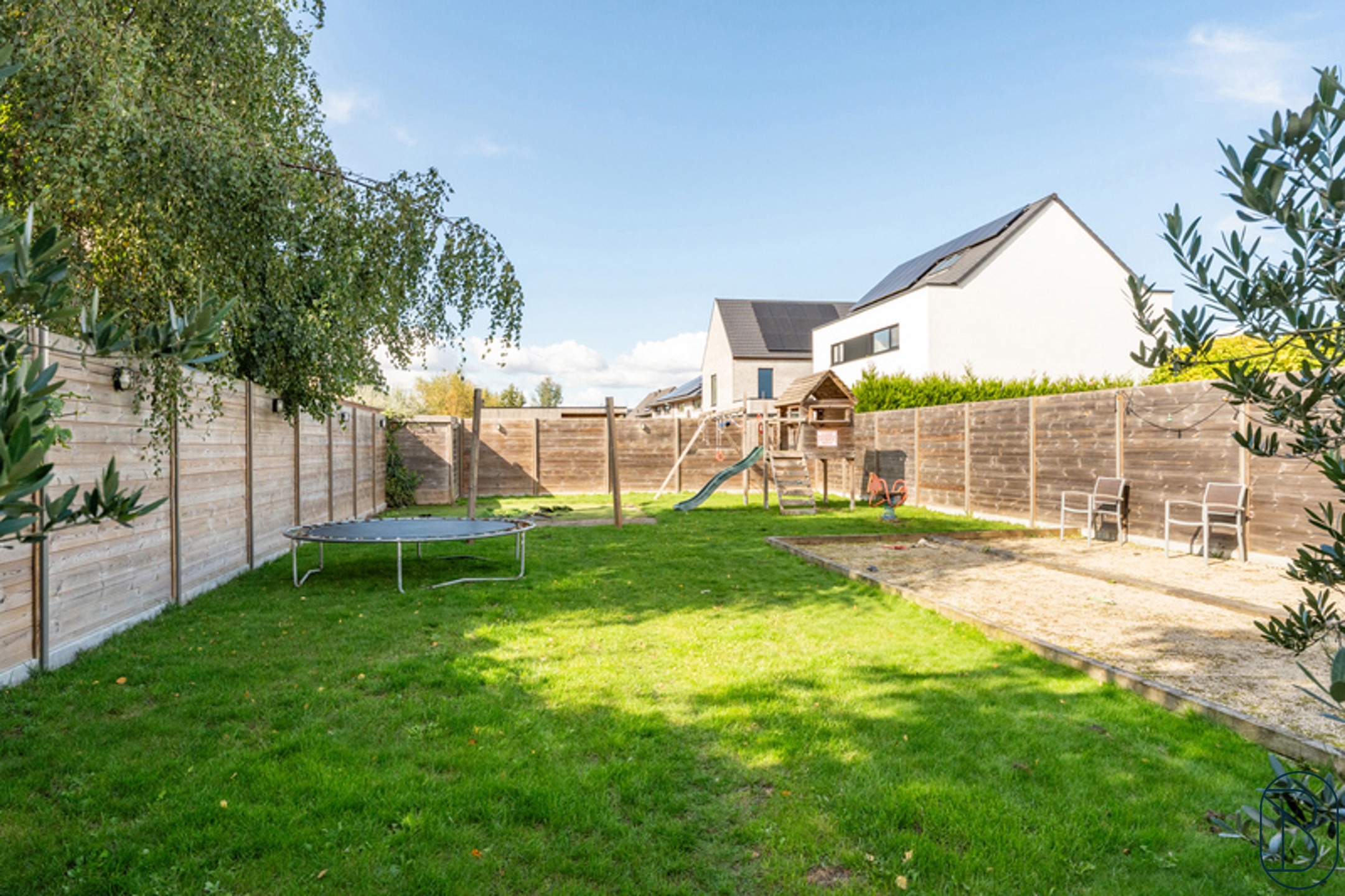 Buiten is er een ruime en volledig omheinde tuin met mooi aangelegd terras.