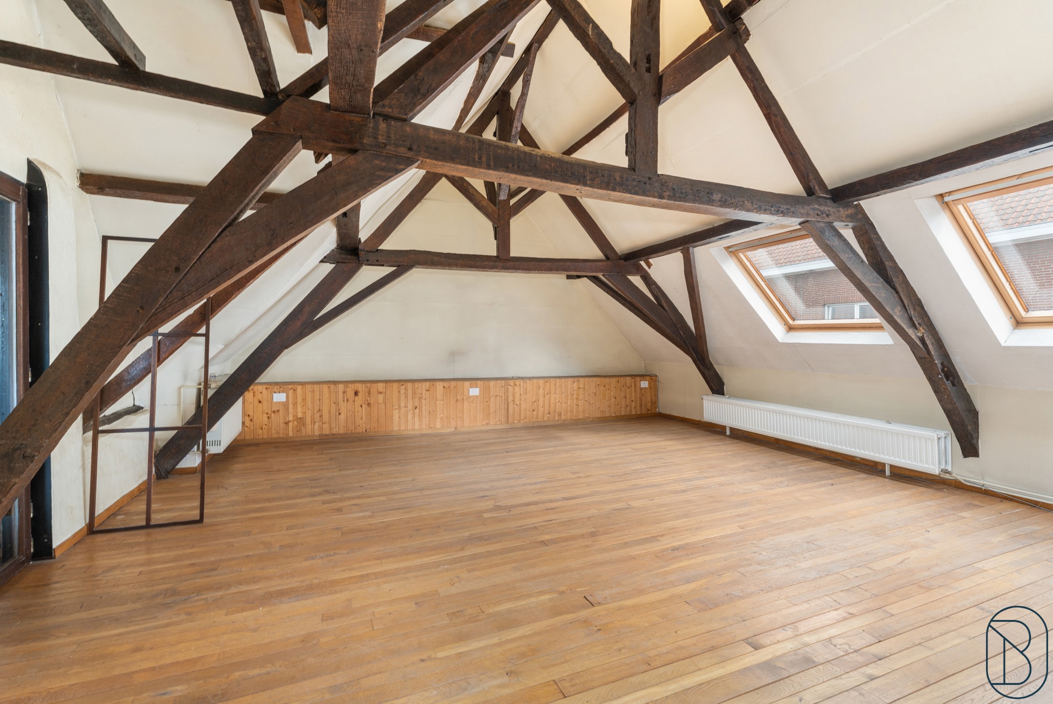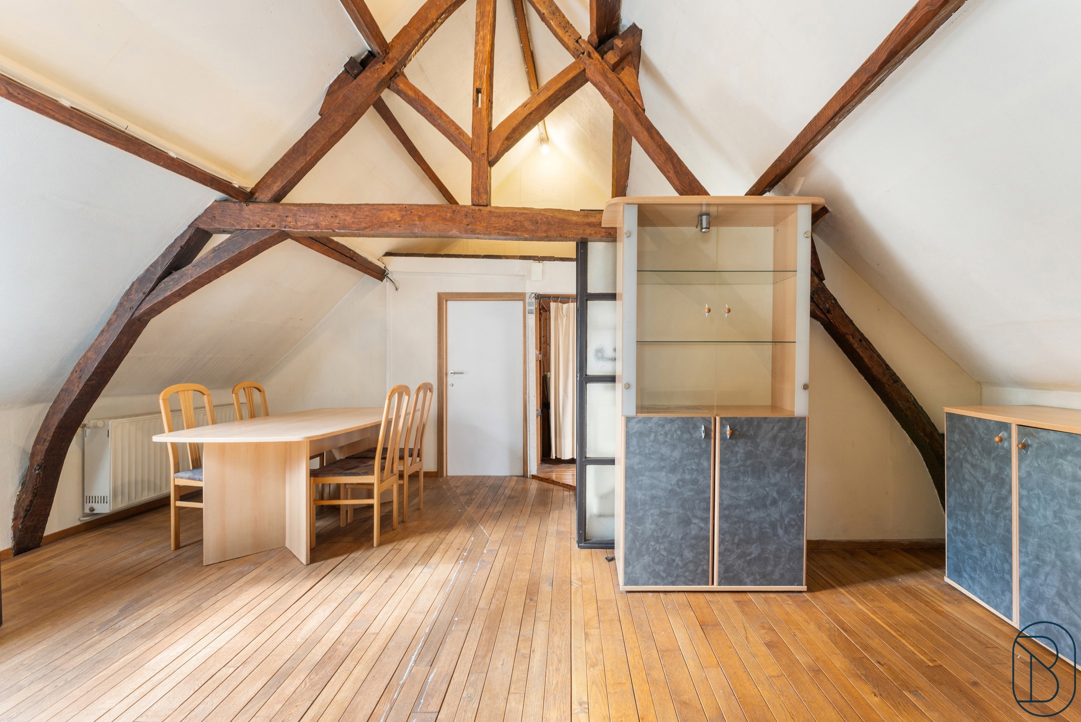 Op de eerste verdieping bevindt zich een polyvalente ruimte die de mogelijkheid biedt voor een woonruimte, bureau, etc.