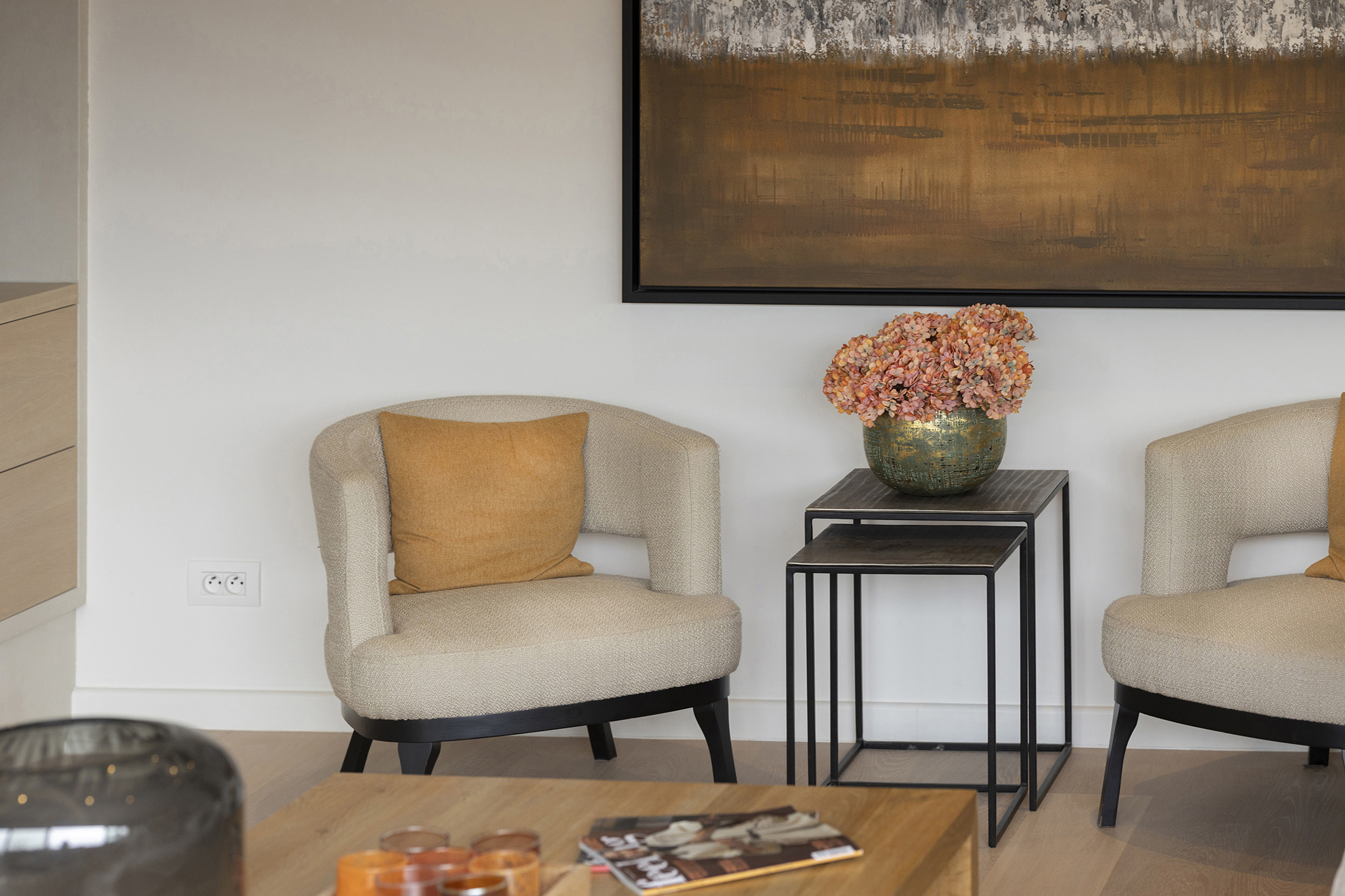 Indeling: directe toegang uit de lift in het appartement, 2 aparte toiletten, grote lichtrijke leefruimte met open geïnstalleerde luxe-keuken met eiland en aanpalende praktische berg- en wasruimte, 3 slaapkamers waarvan één met dressing en 2 kwalitatieve badkamers.