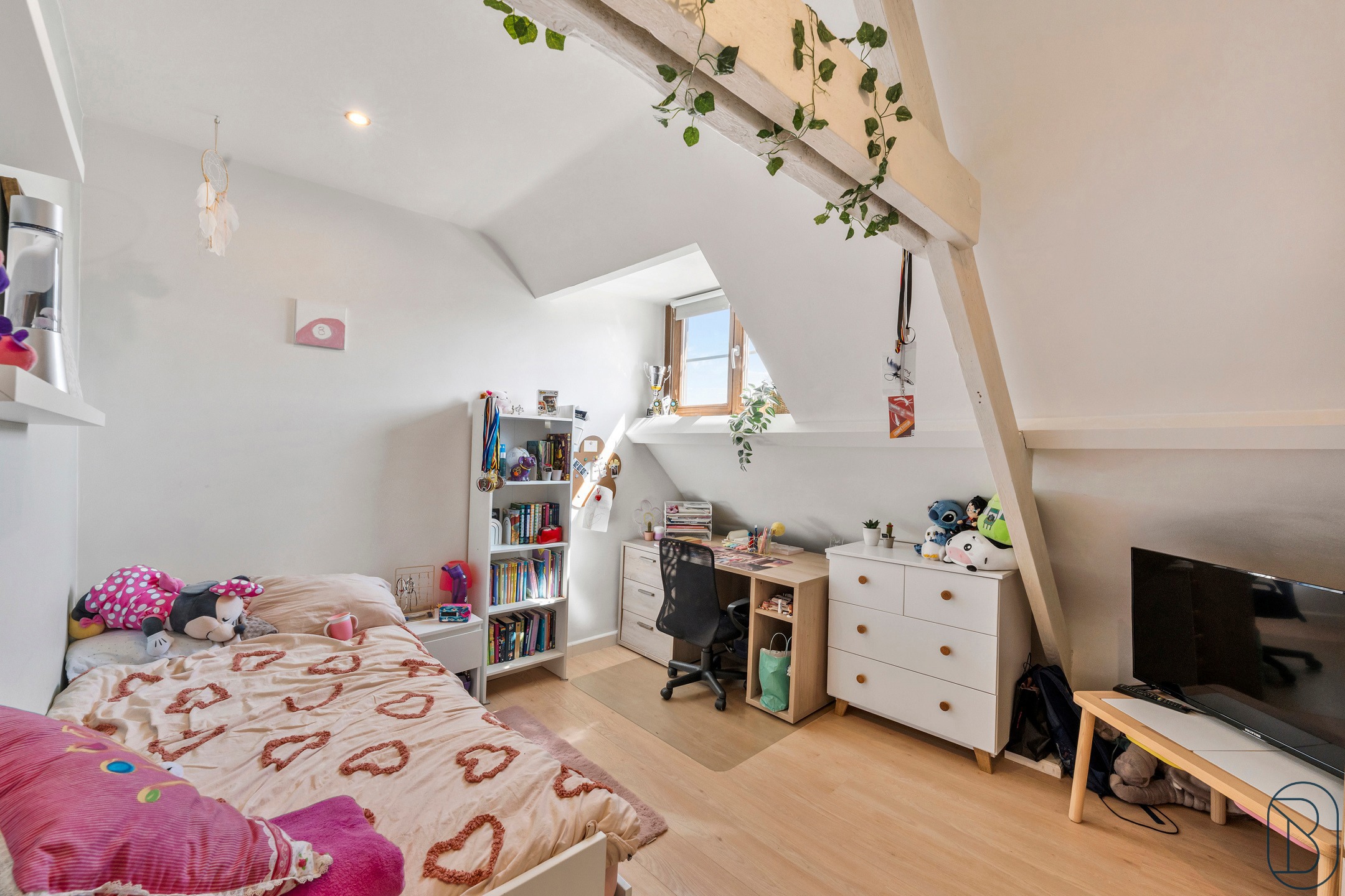INDELING: inkom met toilet, gezellige lichtrijke leefruimte, leuke geïnstalleerde keuken, bijkeuken en wasplaats, terras en grote tuin, handige kelder. Op het 1ste verdiep: de masterbedroom + dressing met badkamer, extra slaapkamer, en op het 2de verdiep 2 slaapkamers en een douchekamer.