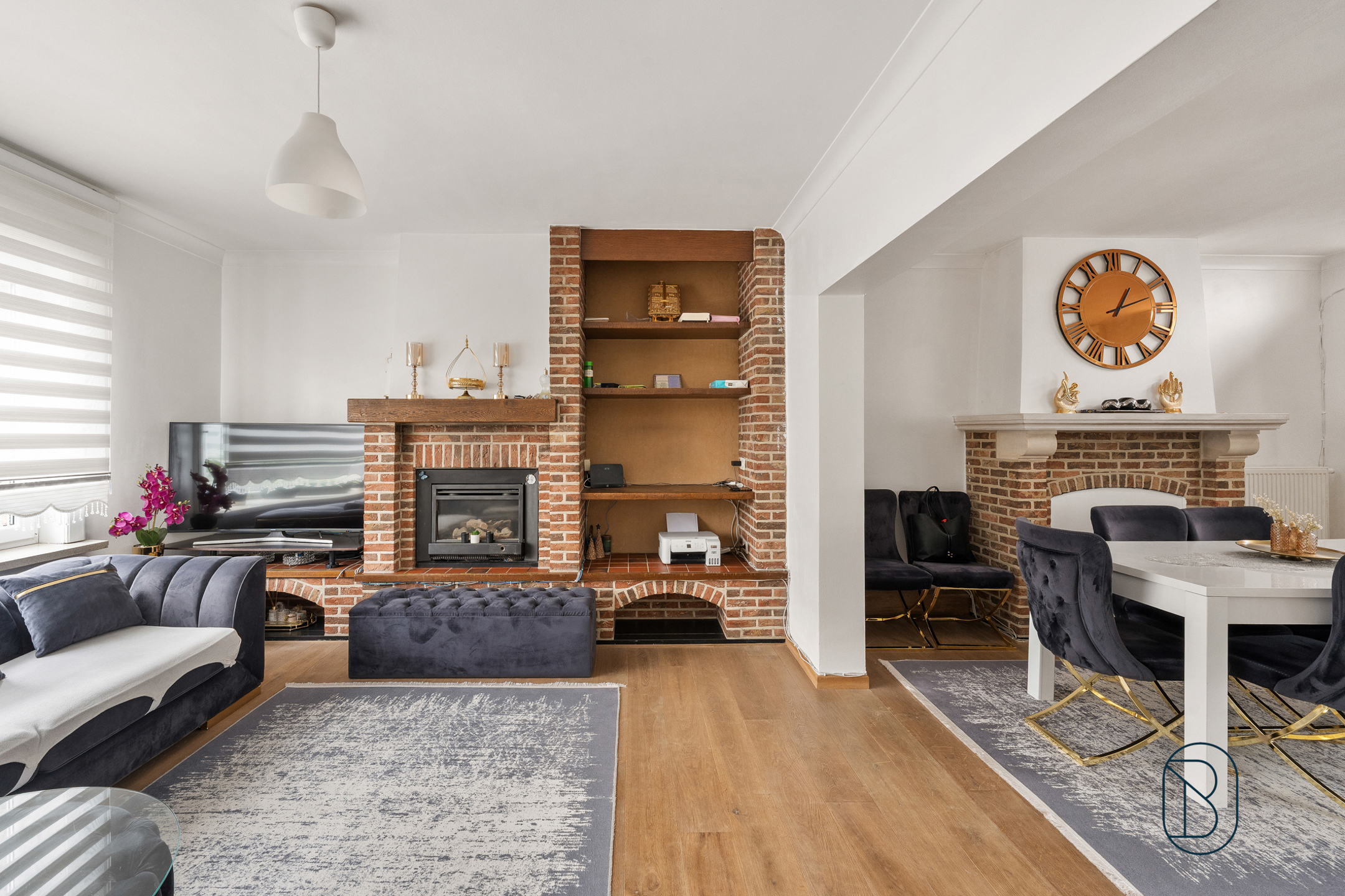 INDELING: inkom en traphal, toilet, bureau, gezellige grote leefruimte, keuken met ontbijthoek, garage met wasplaats en kelder. Op de eerste verdieping bevinden zich de overloop, 4 volwaardige slaapkamers, de badkamer en een douchekamer. Ruime geïsoleerde zolder (dak in perfecte staat) met tal van mogelijkheden.