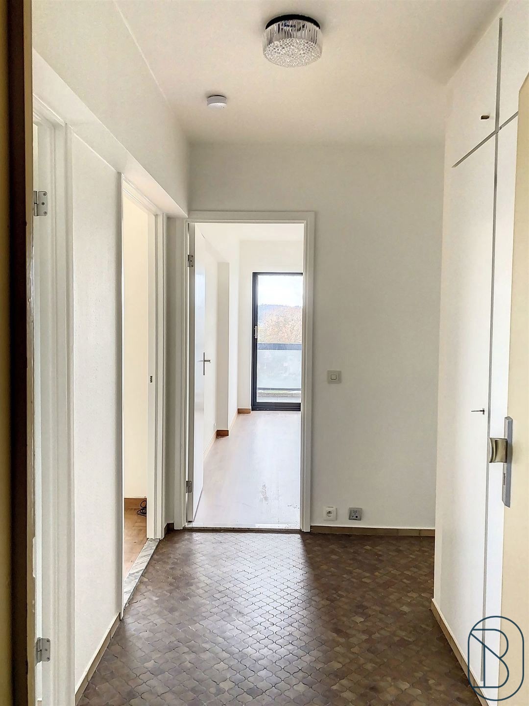 Goedgelegen op 1 minuut van het station: ruime degelijk appartement met 2 slaapkamers en een terras genietend van een magnifiek uitzicht.