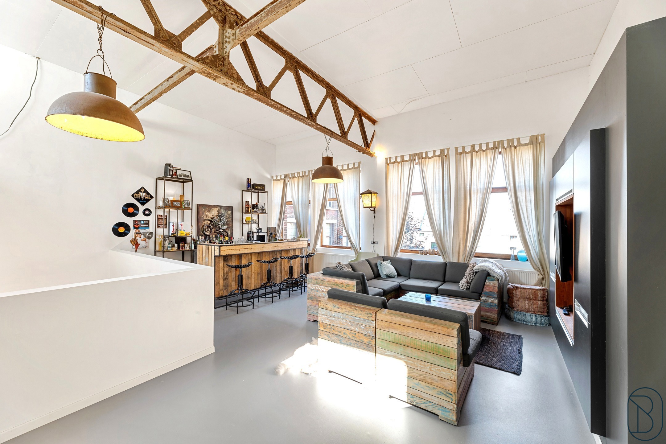 Deze leuke grote loft (285m2!) werd ingericht met behoud van charme en de industriële look werd bewaard. Voorzien van zonnepanelen + batterij. INDELING: grote toffe leefruimte met open geïnstalleerde keuken, extra bureauruimte, berging en douchekamer, leuk zonneterras. Op het verdiep werd een mancave ingericht, met extra terras, en dan nog een bureauruimte, slaapkamer, dressing en badkamer. Mogelijkheid extra slaapkamers te maken. Ideaal voor mensen op zoek naar ruimte, en dit op wandelafstand van centrum Ronse. Ondergrondse staanplaats: €20.000. Bezoek na afspraak met Immo Beguin: info@immobeguin.be