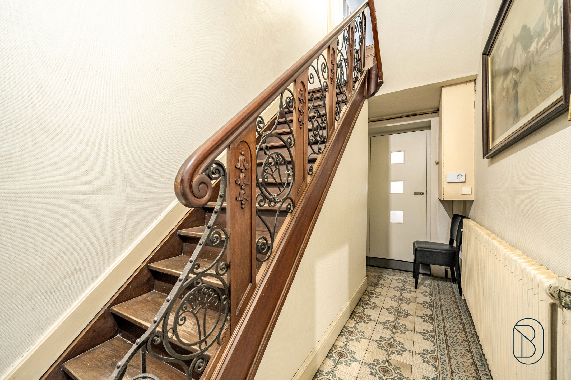 Indeling 2de woonst: op het gelijkvloers: inkom, leefruimte/bureau, kelder met toegang tot straat, eerste verdiep: leefruimte, slaapkamer en badkamer. Tweede verdiep: zolder met toegang tot het dak (mogelijkheid om een dakterras aan te leggen), slaapkamer.