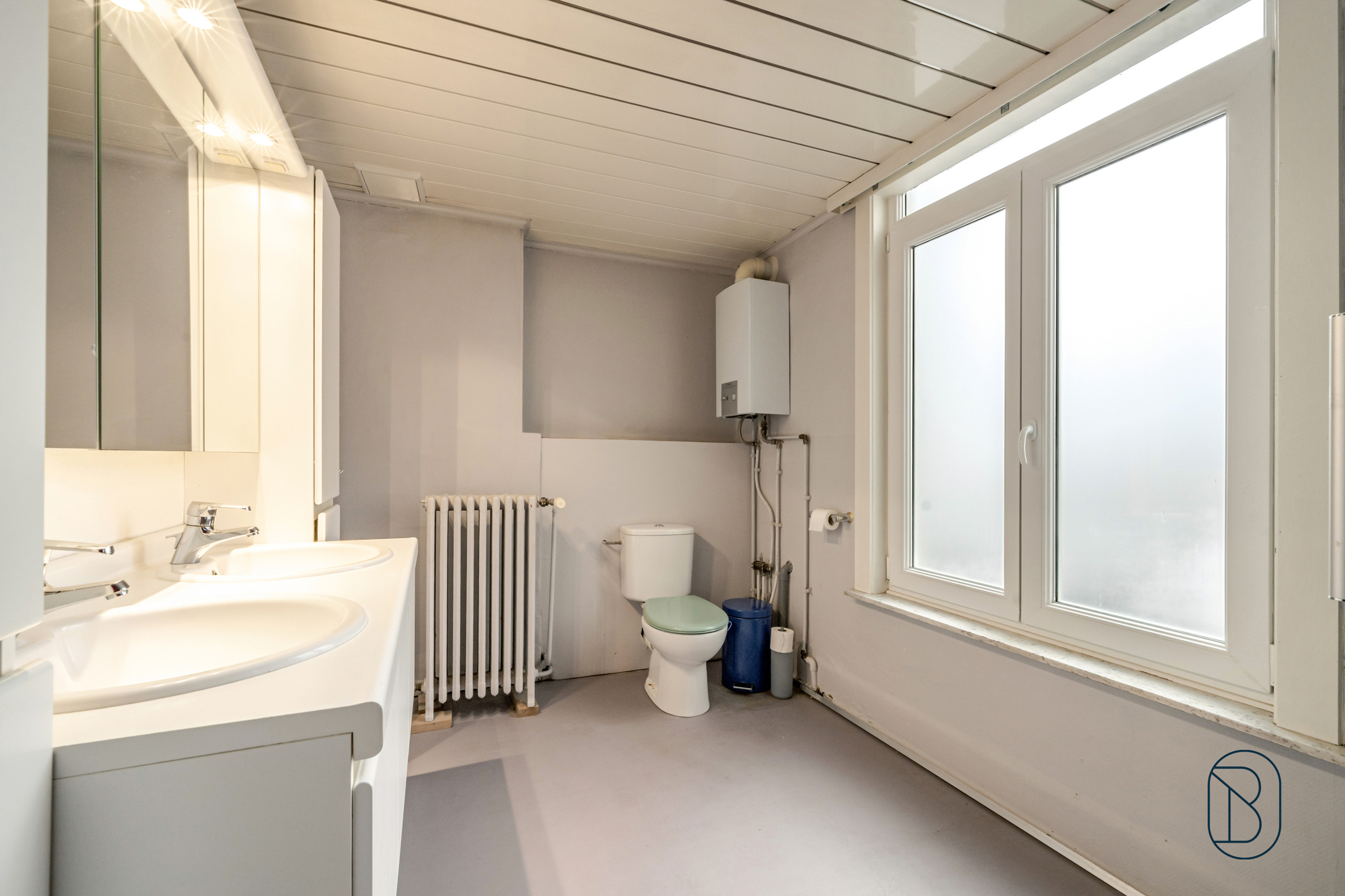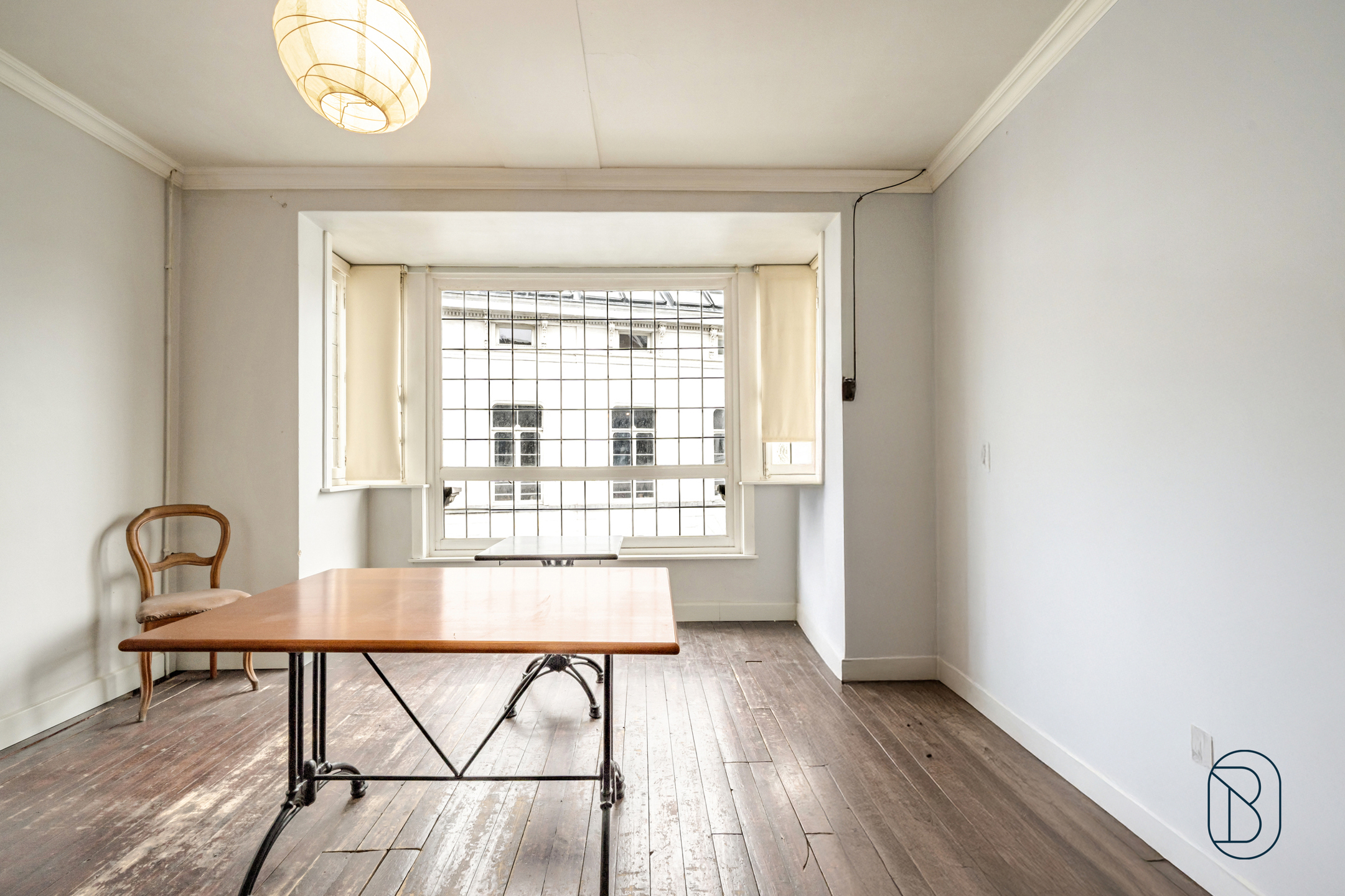 Indeling 2de woonst: op het gelijkvloers: inkom, leefruimte/bureau, kelder met toegang tot straat, eerste verdiep: leefruimte, slaapkamer en badkamer. Tweede verdiep: zolder met toegang tot het dak (mogelijkheid om een dakterras aan te leggen), slaapkamer.