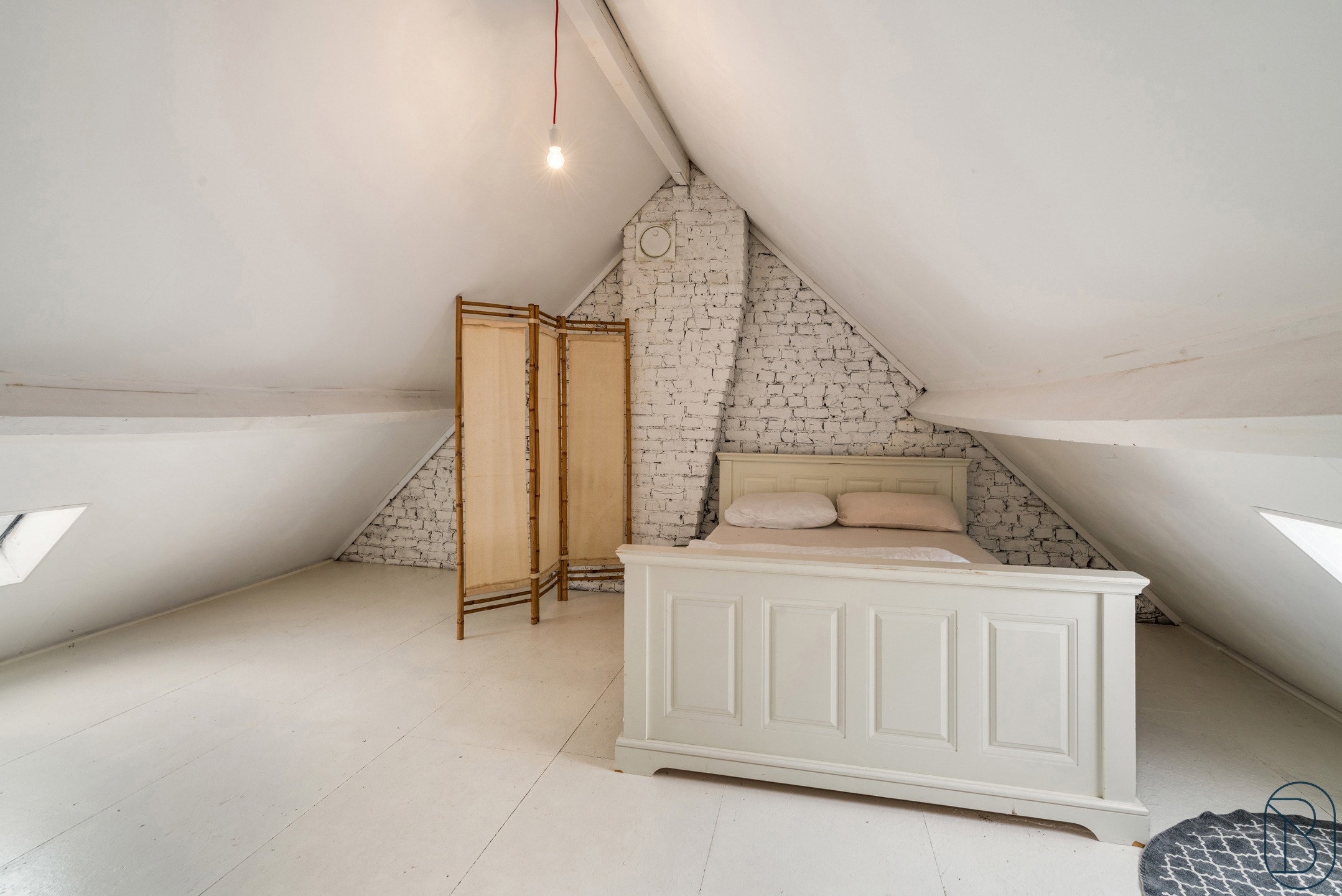Indeling: inkom, ruime leefruimte, keuken, badkamer, handige bergruimte en wasplaats. Op de eerste verdieping bevingen zich 2 grote kamers. De zolder is volledig ingericht als slaapkamer en bereikbaar via een vaste trap.