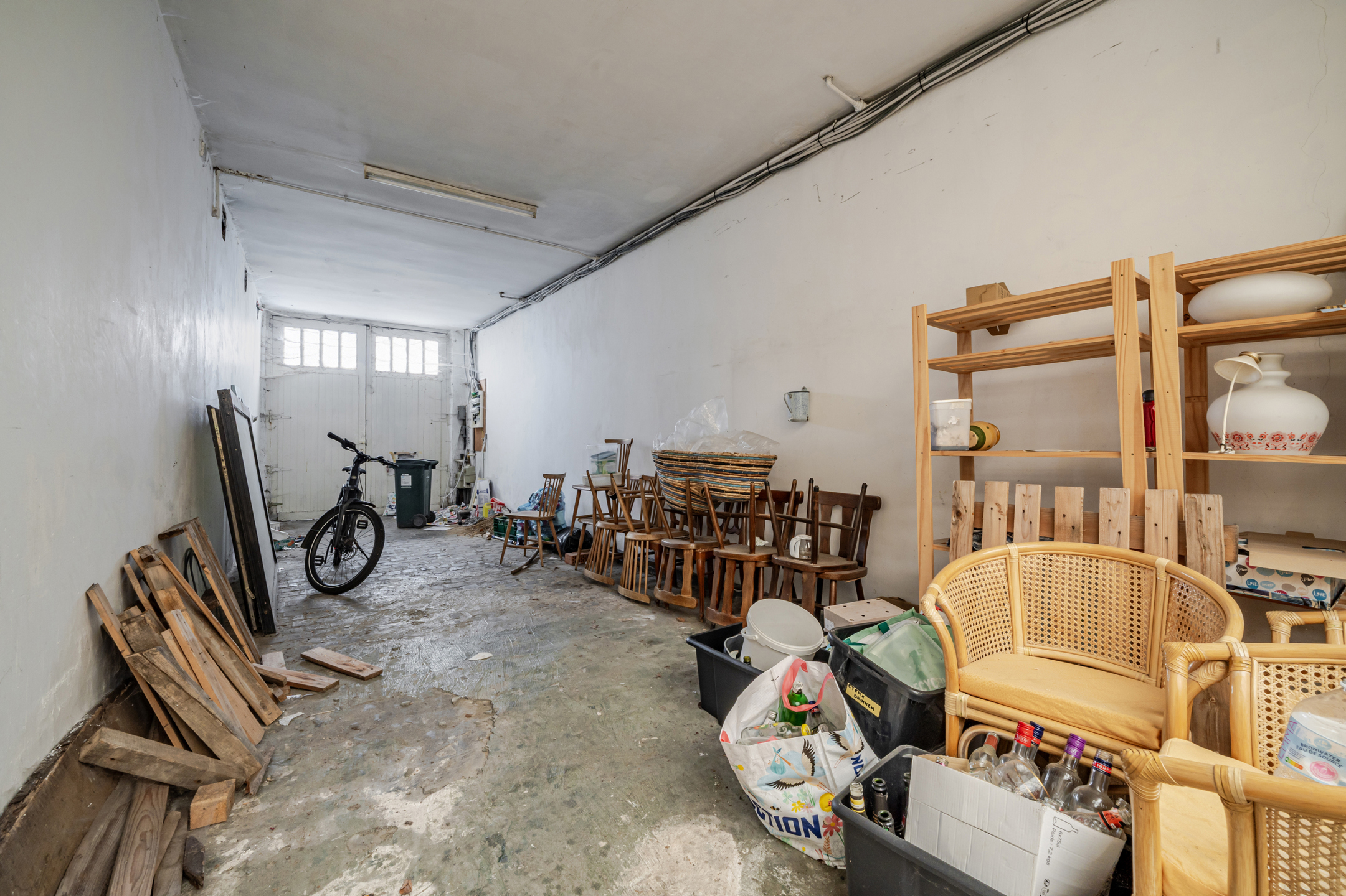 Gelegen op een commerciële locatie: grote degelijke eigendom met veel potentieel. Deze eigendom bestaat uit een wInkelruimte, leuke bovenliggende woonst, grote garage met hoge inrijpoort, achterliggend atelier met extra mogelijkheden en 2 kelders.