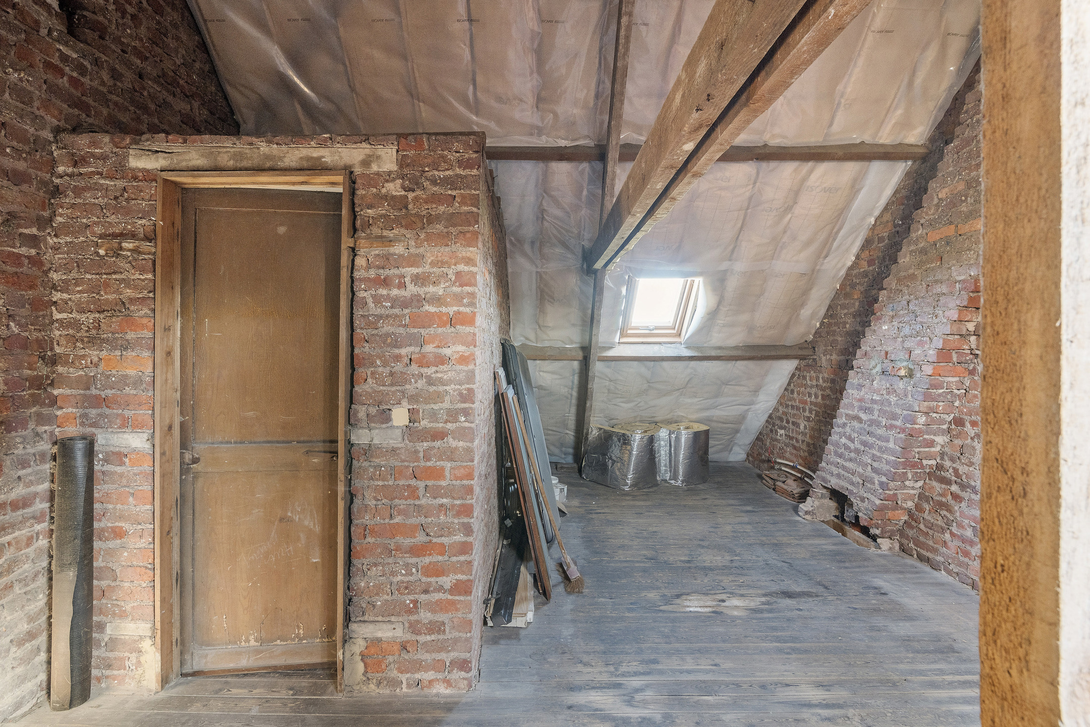 Deze charmante woning omvat een inkomhal, een gezellige leefruimte, een toffe keuken met extra ontbijthoek, een badkamer en een aangename tuin. Op de eerste verdieping bevinden zich de overloop, twee slaapkamers en een dressing. De zolder, bereikbaar via een vaste trap, biedt extra inrichtingsmogelijkheden.