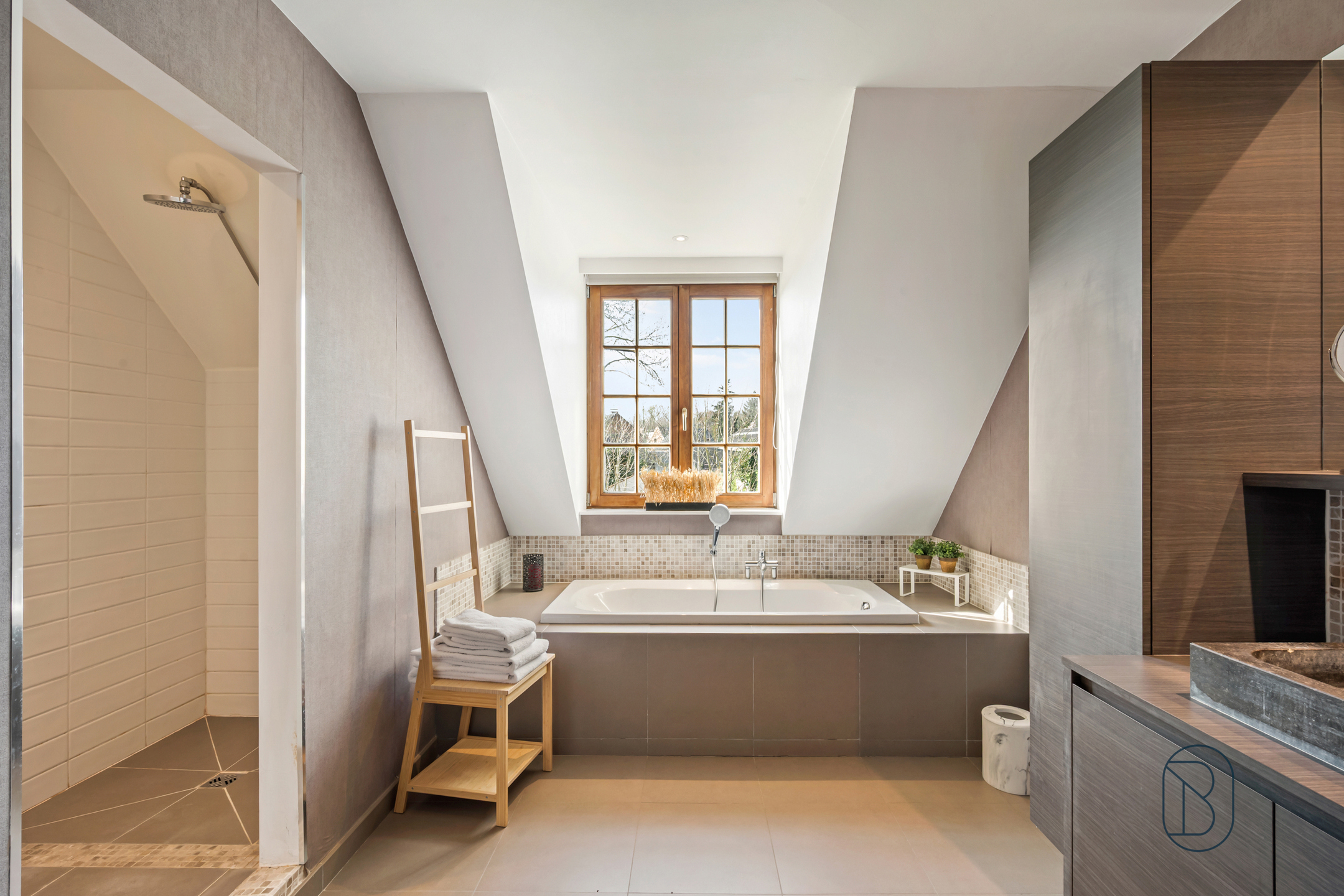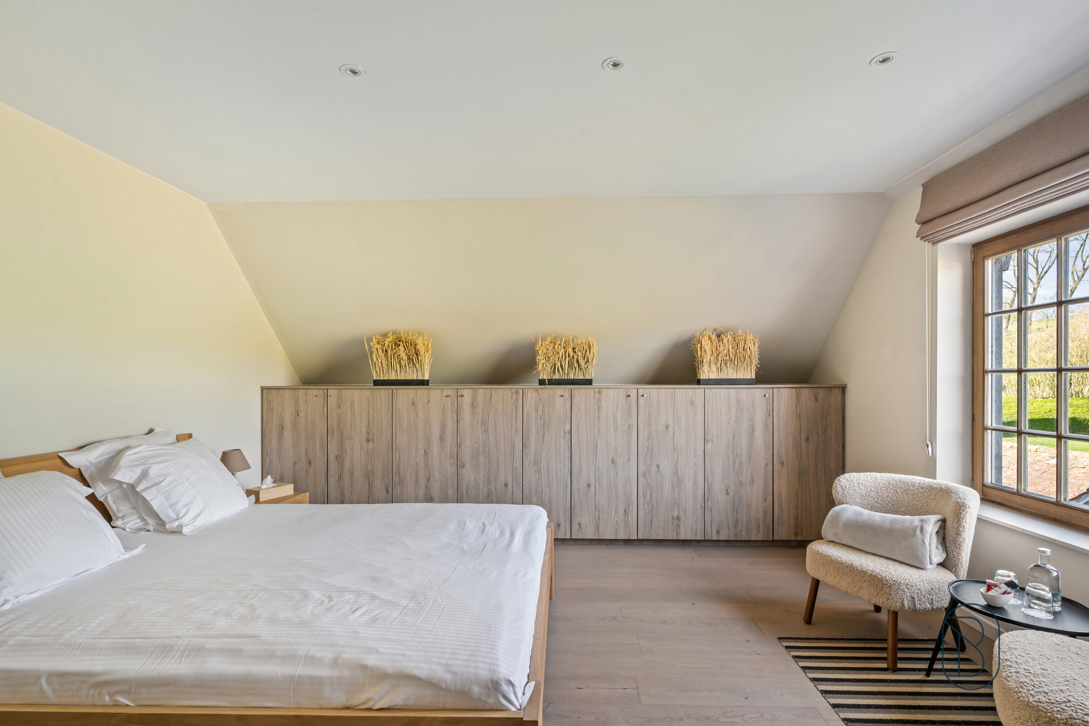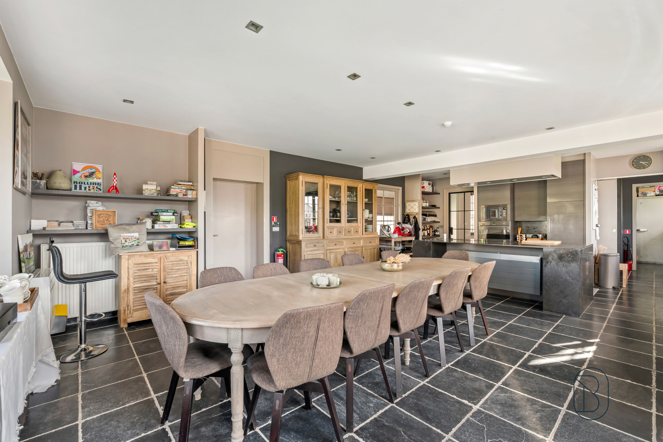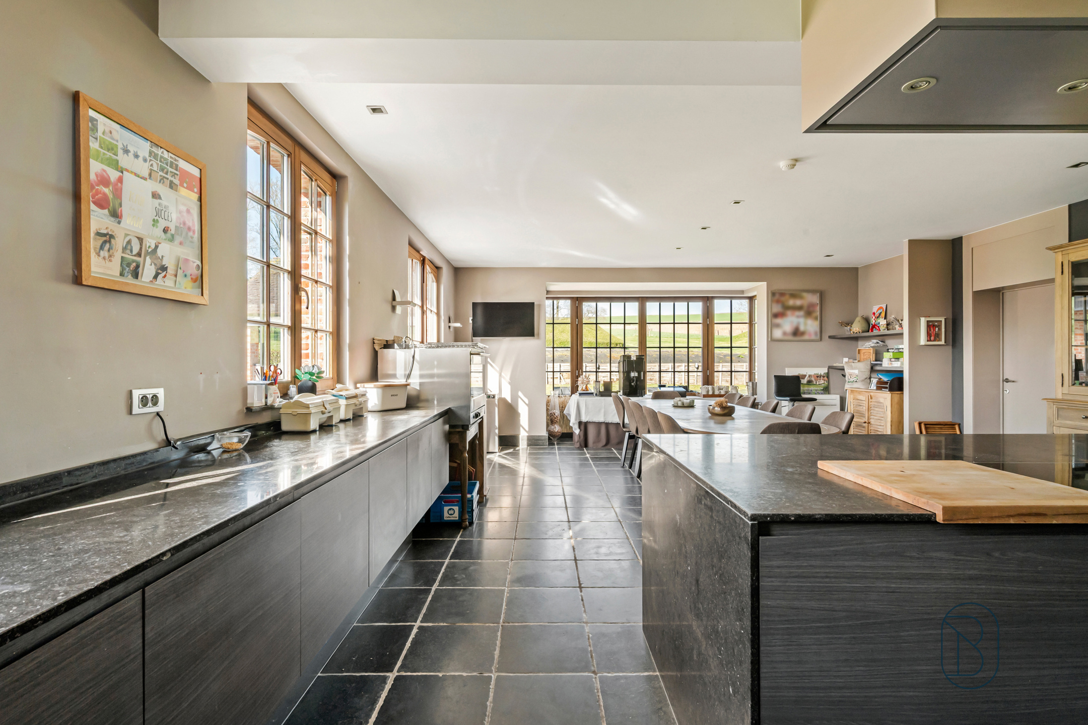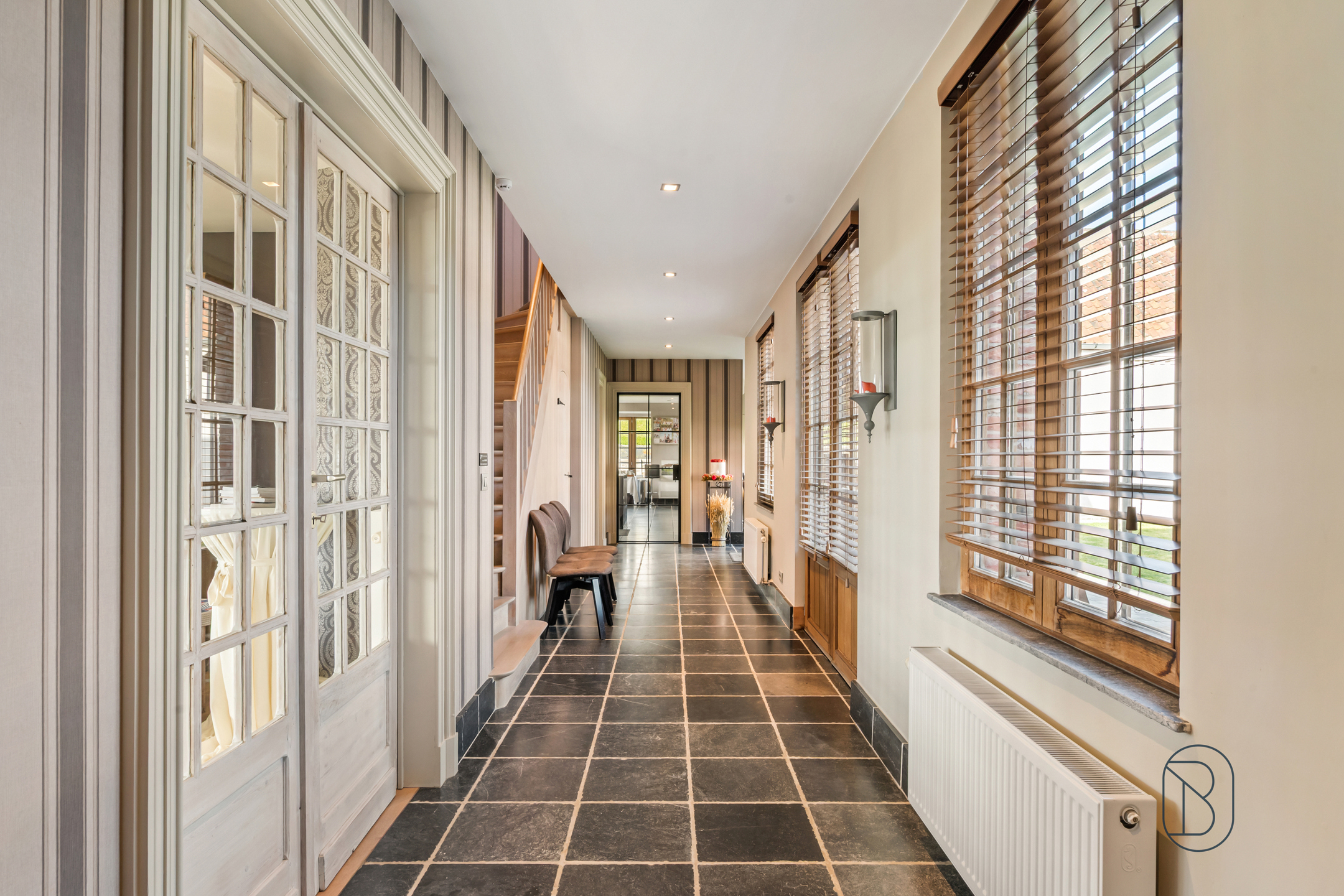 Binnen wordt u meteen verrast door de warme en gezellige geïnstalleerde leefkeuken met eiland, volledig uitgerust met kwalitatieve toestellen, en een praktische bijkeuken en berging met koelcel, inkom en ontvangsthal, gezellige zithoek en op het verdiep, 4 slaapkamers met 3 bad- en/of douchekamers.