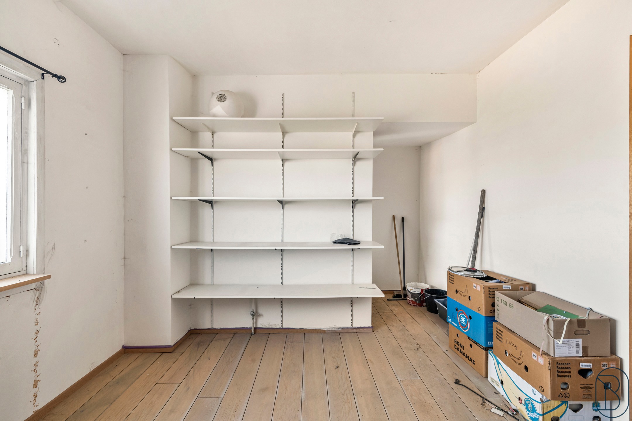 Grote handelswoning met 5 slaapkamers, atelier (105 m²) en TUIN. Bij binnenkomst treft u een polyvalente ruimte, ideaal als winkel, praktijk of uitbreiding van de woning. Aansluitend: leefruimte met halfopen keuken en bergruimte. Op de eerste verdieping bevinden zich vier slaapkamers (waarvan één met dressing en één met toegang tot een overdekt terras), een ruime badkamer (bad, douche, toilet) en een open bureauruimte. De tweede verdieping biedt een grote slaapkamer, een extra kamer met voorzieningen voor een tweede badkamer en een aparte stookruimte. Buiten is er een tuin met overdekt terras. Troeven: ruime woning met tuin, groot atelier, geschikt voor gemengd gebruik.
