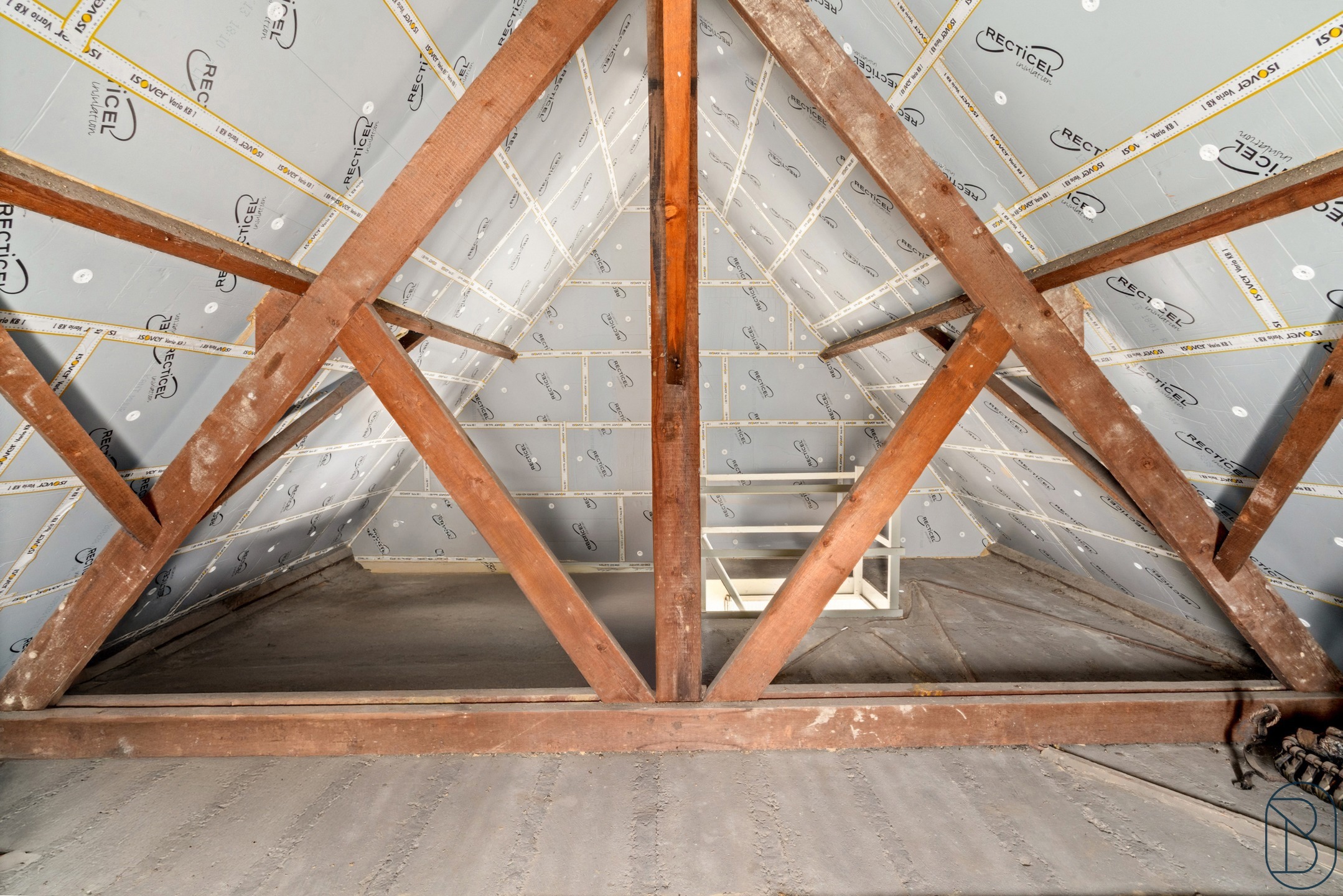 Op het verdiep bevinden zich de overloop, 2 ruime slaapkamers en de badkamer. Grote zolder met geïsoleerd dak, die extra mogelijkheden biedt.