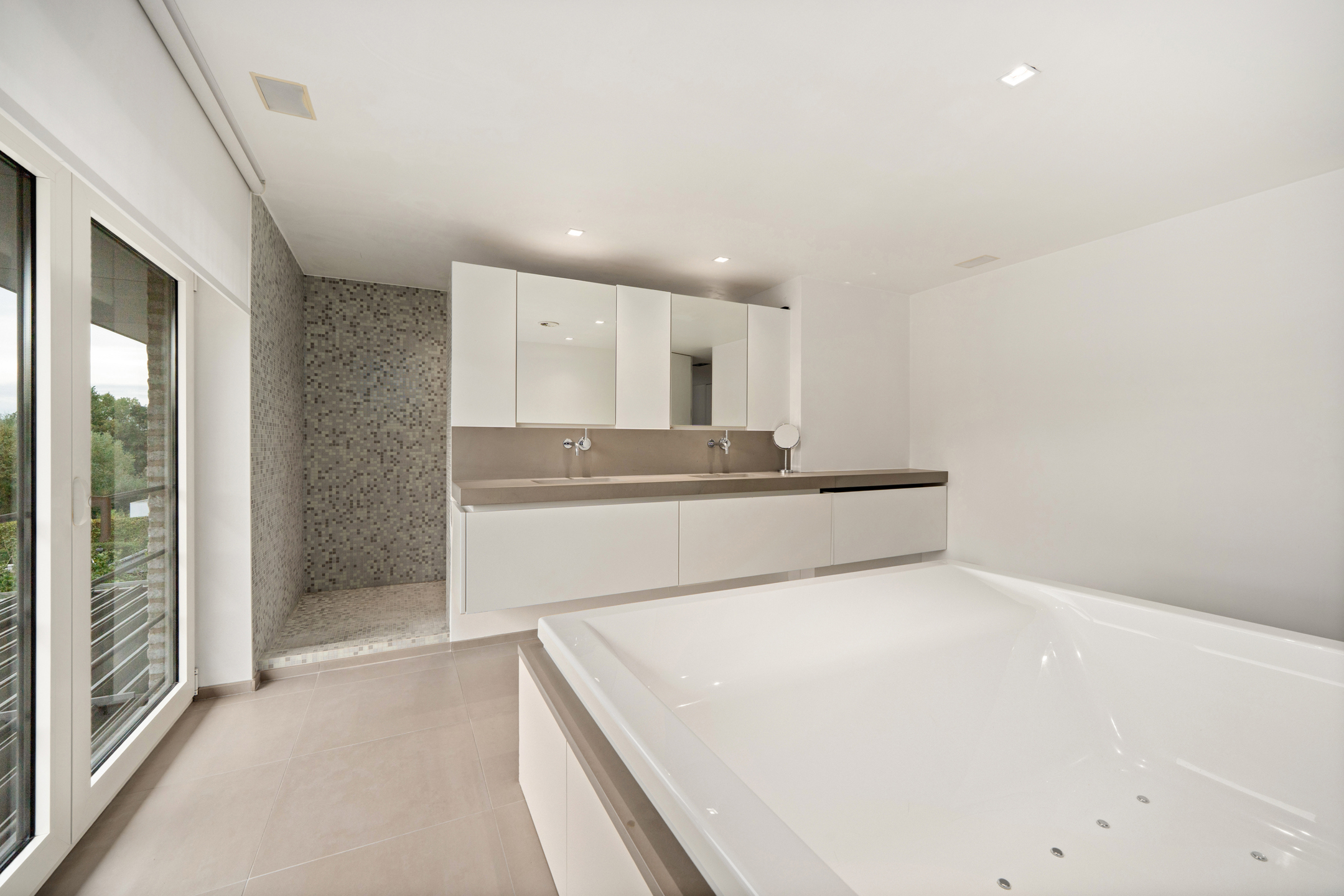 Volledig onderkelderd: prachtig nieuw binnenzwembad, bar/mancave en wijnfrigo, wellness: sauna en stoomdouche, en een sportruimte, aanpalend buiten terras met jacuzzi.